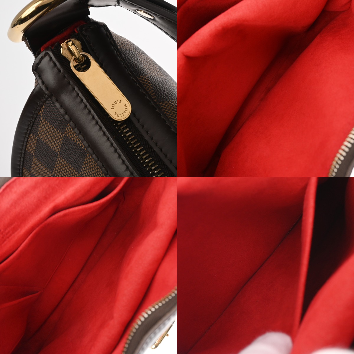 - 若干つぶれ、スレ、薄汚れ、ファスナーテープにヨレ、持ち手やベルトにクセ、金具にスレがございます。