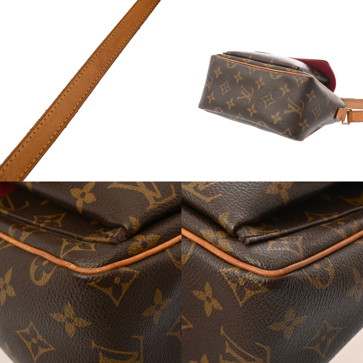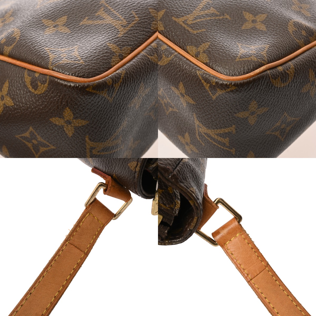- つぶれ、テカリ、薄汚れ、ヌメ革ヤケ、シミ、ショルダーにヨレ、コバスレ、ハゲ、金具に色ハゲ、スリキズなど使用感がございます。