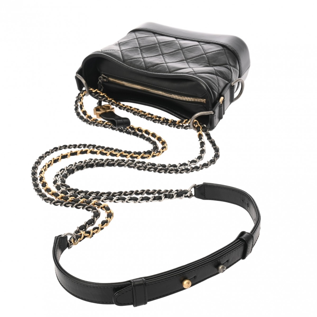 シャネル スモール ホーボーバッグ ブラック A91810 エイジドカーフスキン レディース バッグ 【中古】【bag】
