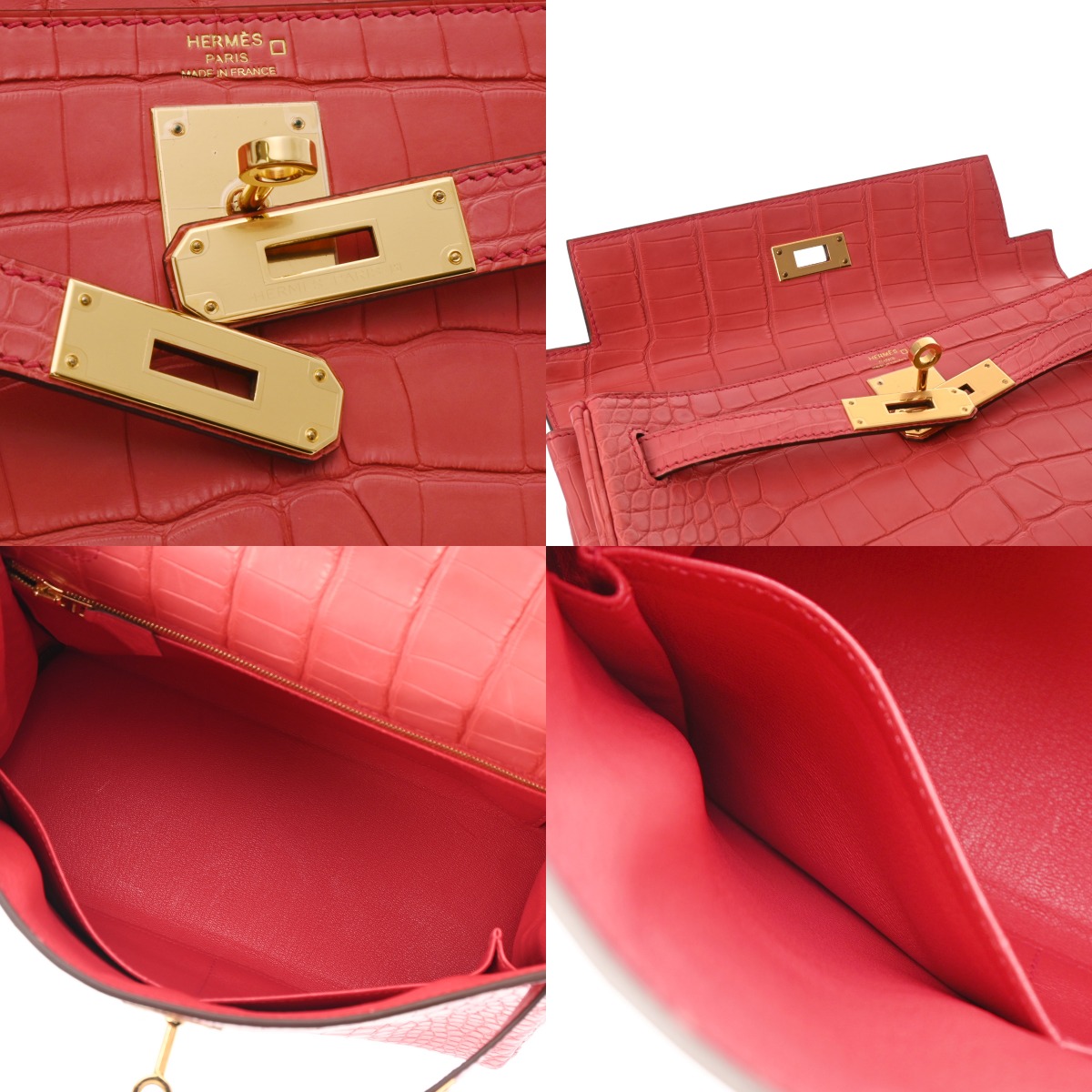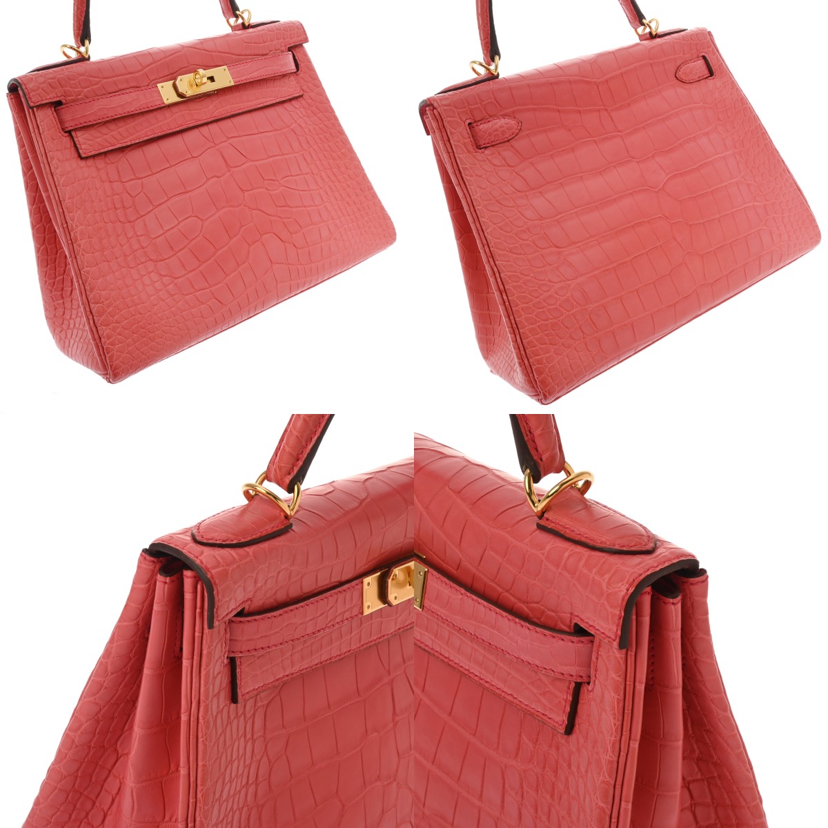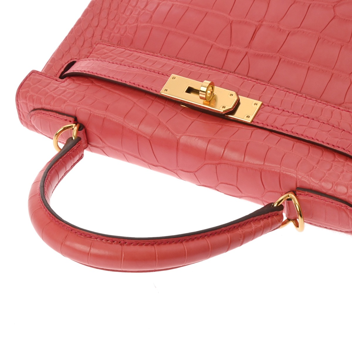 エルメス ケリー 28 内縫い 2WAY ローズテキサス アリゲーターマット レディース バッグ 【中古】【bag】