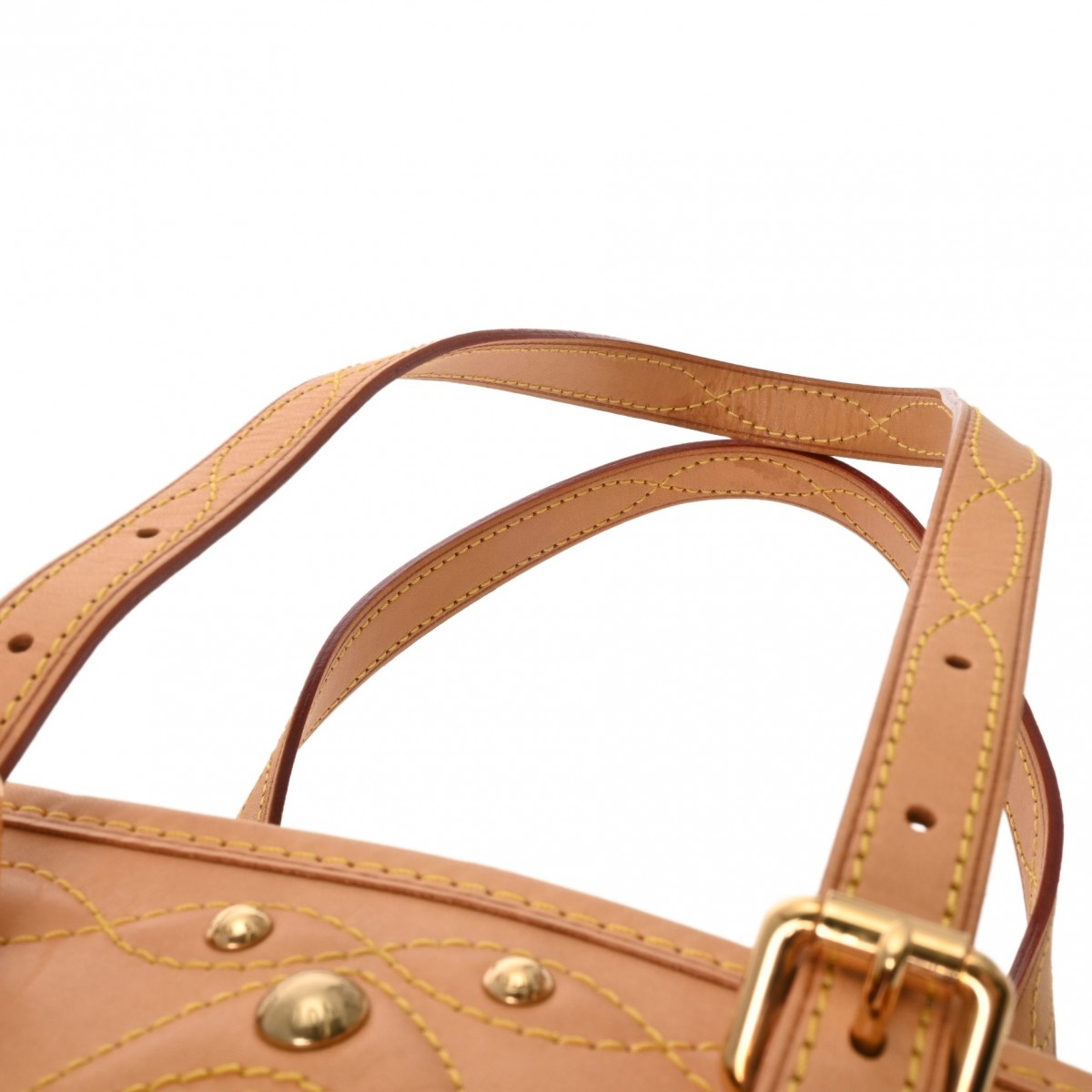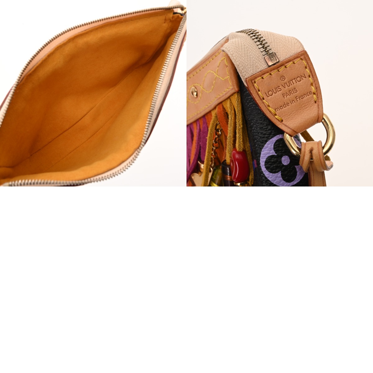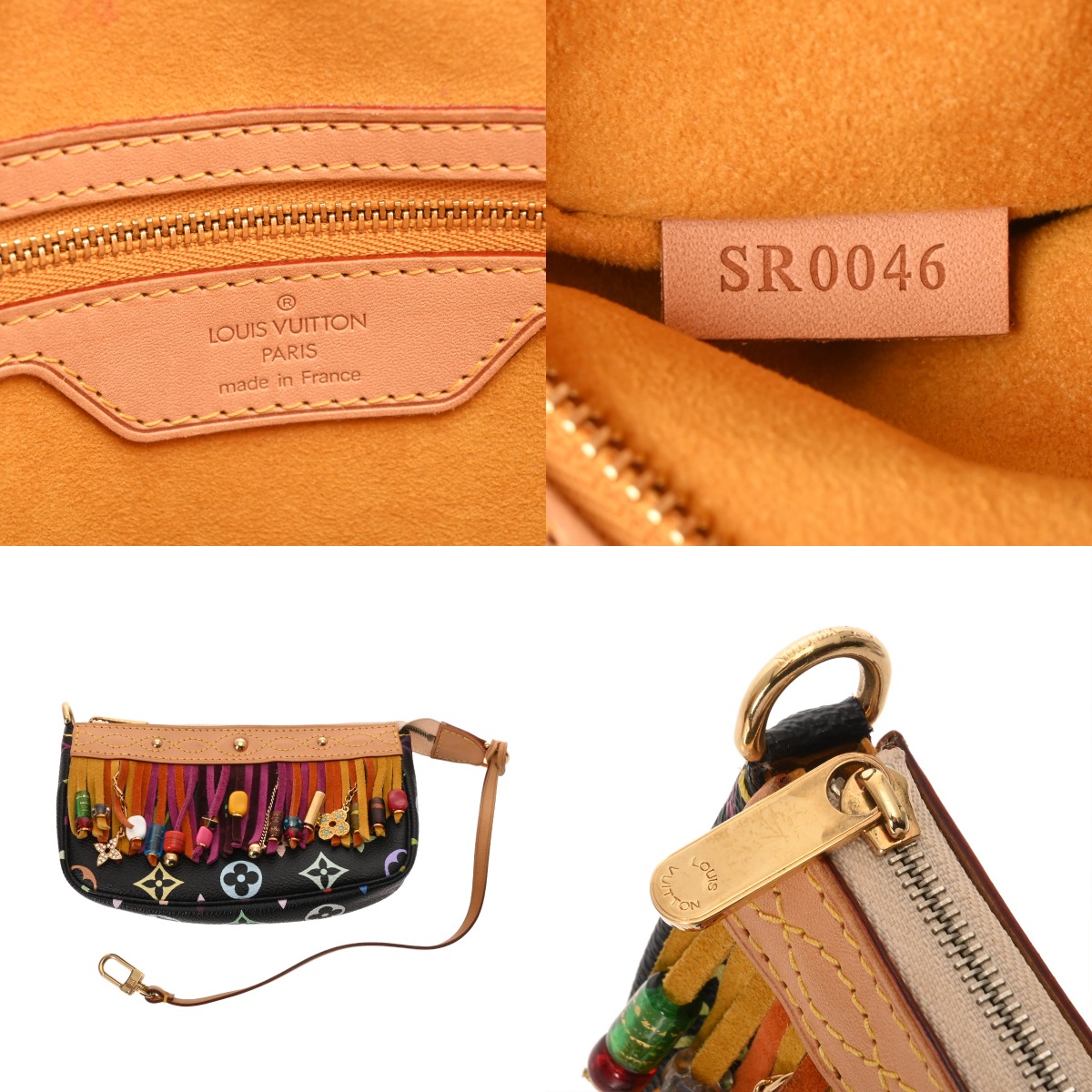 - たたみクセ、ヌメ革ヤケ、シミ、ショルダーにクセ、フリンジに毛の乱れ、毛羽立ち、金具にスリキズなど少々使用感がございます。※一部のビーズに欠損がございます。