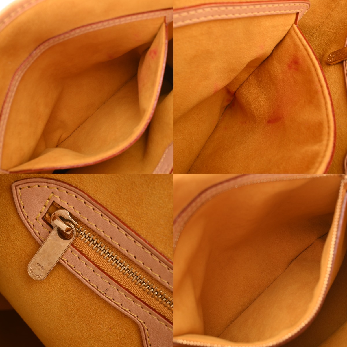 薄汚れやスレ、毛羽立ち、シワ、ヌメ革にヤケ、ポケットに広がりやヨレなど少々使用感がございます。