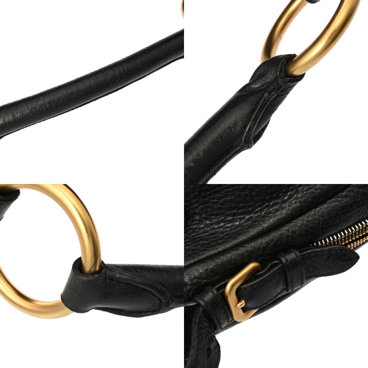 - つぶれ、テカリ、スレやシワ、持ち手のベルト部分にほつれやコバ部分にヒビ割れ、バッグ口にヨレ、金具に青錆の付着やスレなど若干使用感がございます。
