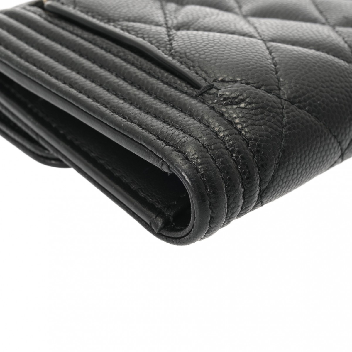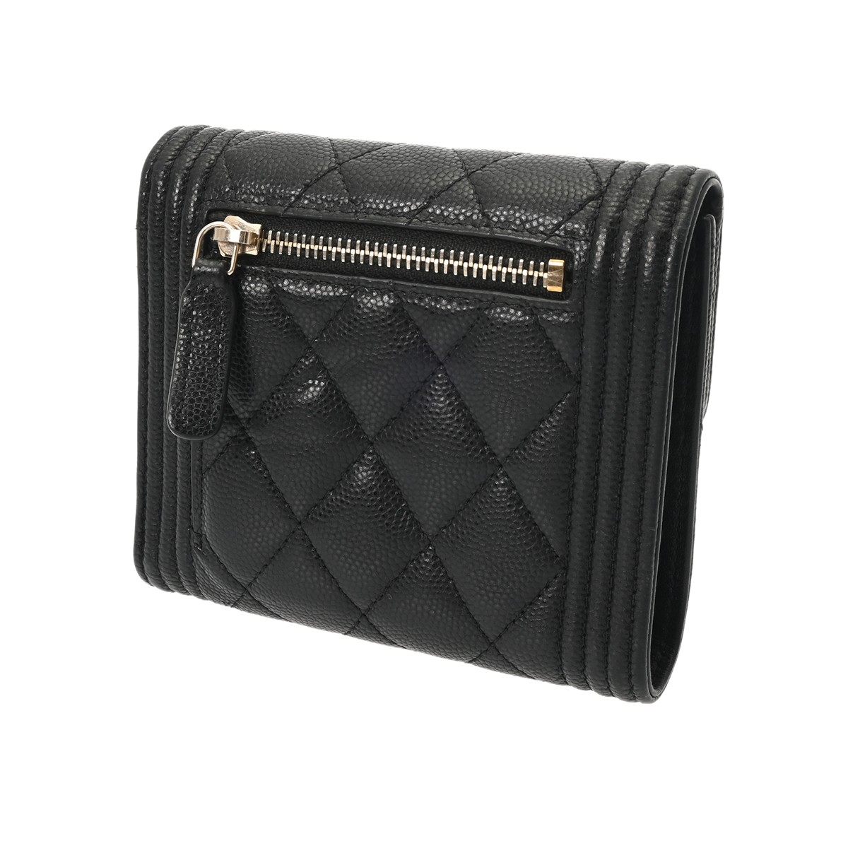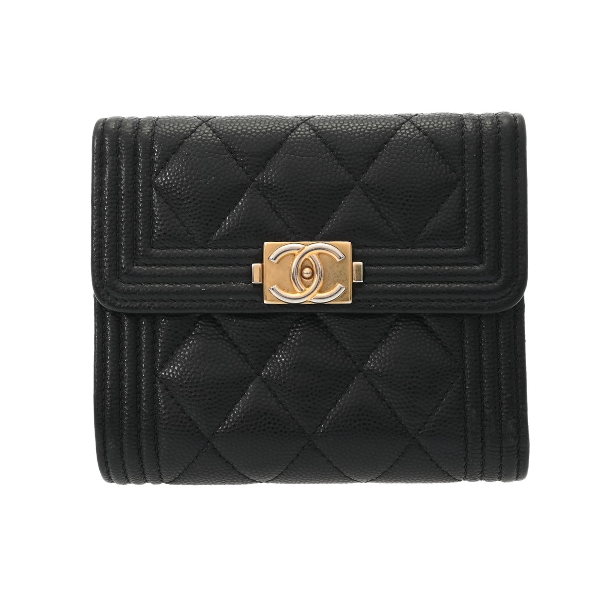 シャネル ボーイシャネル スモールフラップウォレット ブラック A80734 キャビアスキン レディース 財布 【中古】【purse】