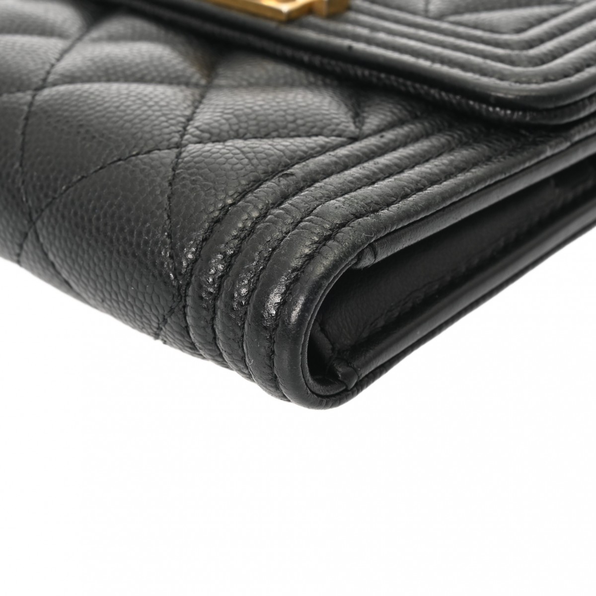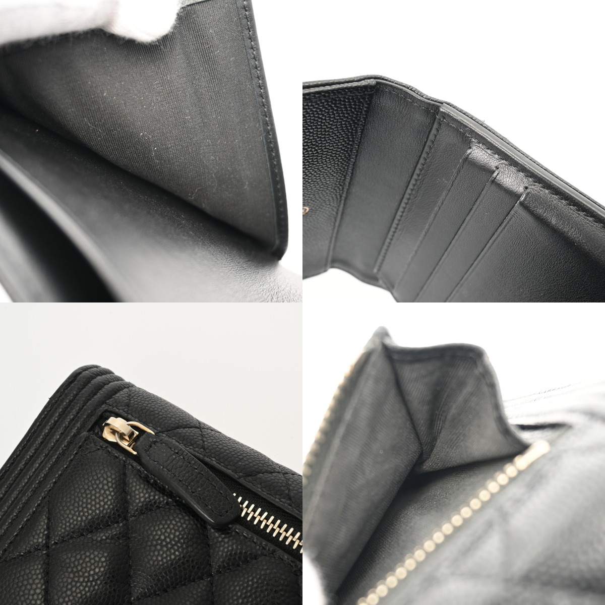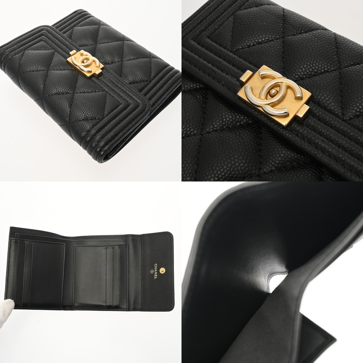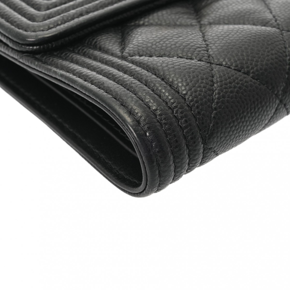 シャネル ボーイシャネル スモールフラップウォレット ブラック A80734 キャビアスキン レディース 財布 【中古】【purse】
