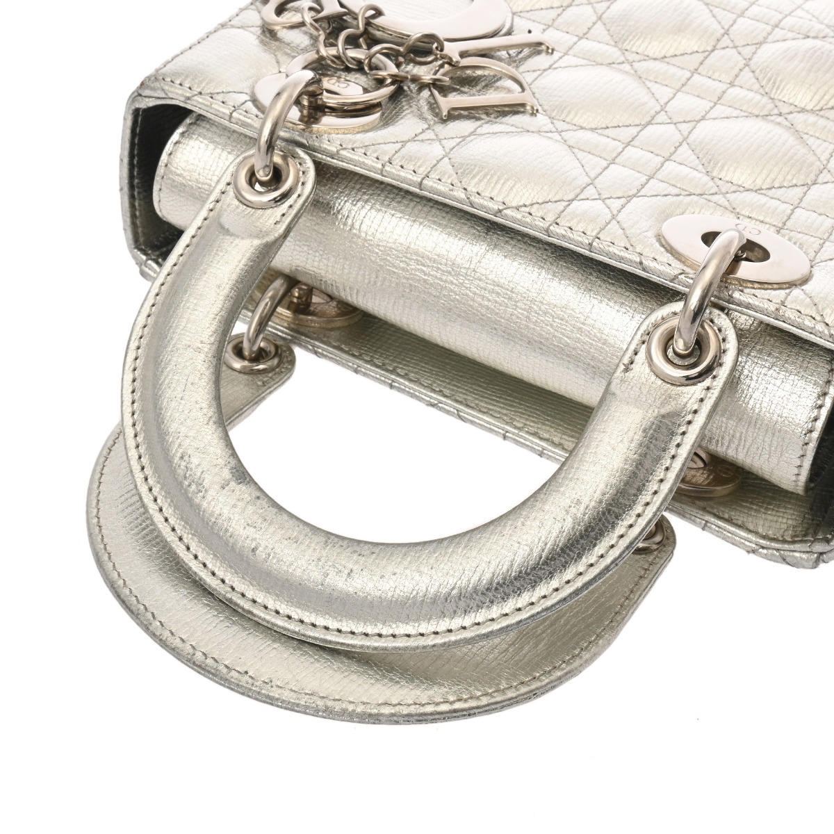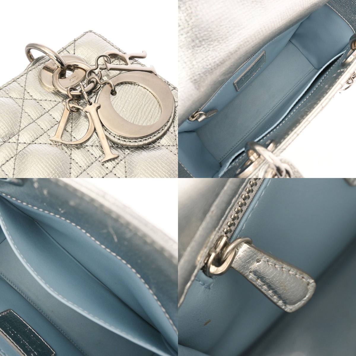 ディオール カナージュ LADY DIOR MY ABCDIOR スモールバッグ シルバー ラムスキン レディース バッグ 【中古】【bag】