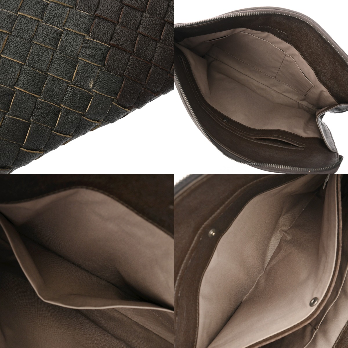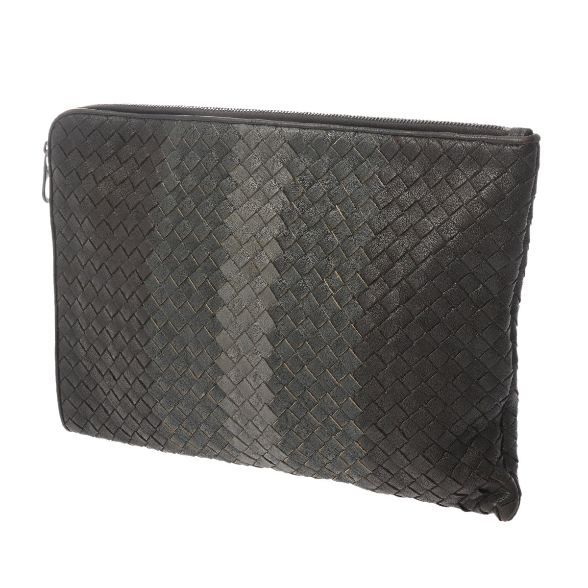 ボッテガ ヴェネタ ドキュメントケース イントレチャート ダークブラウン/グレー レザー メンズ バッグ 【中古】【bag】