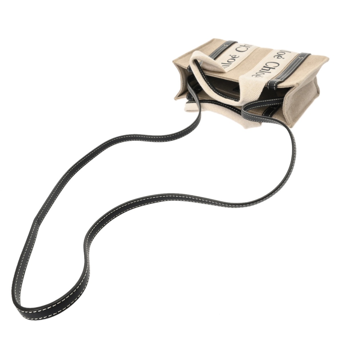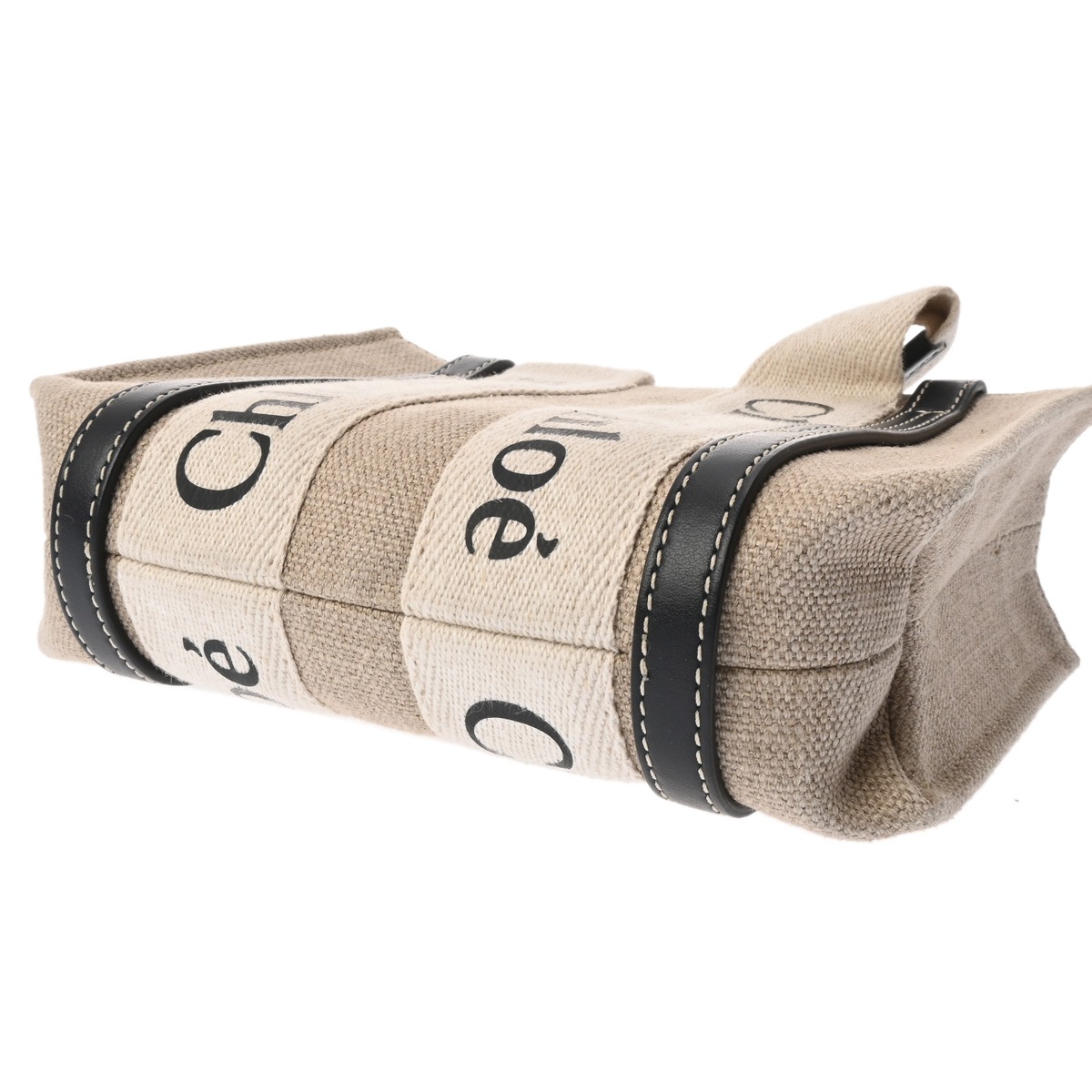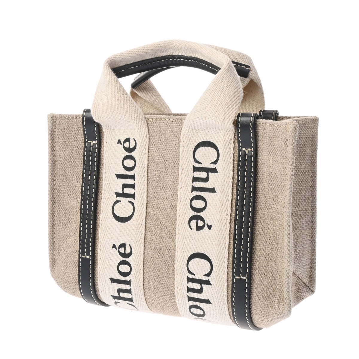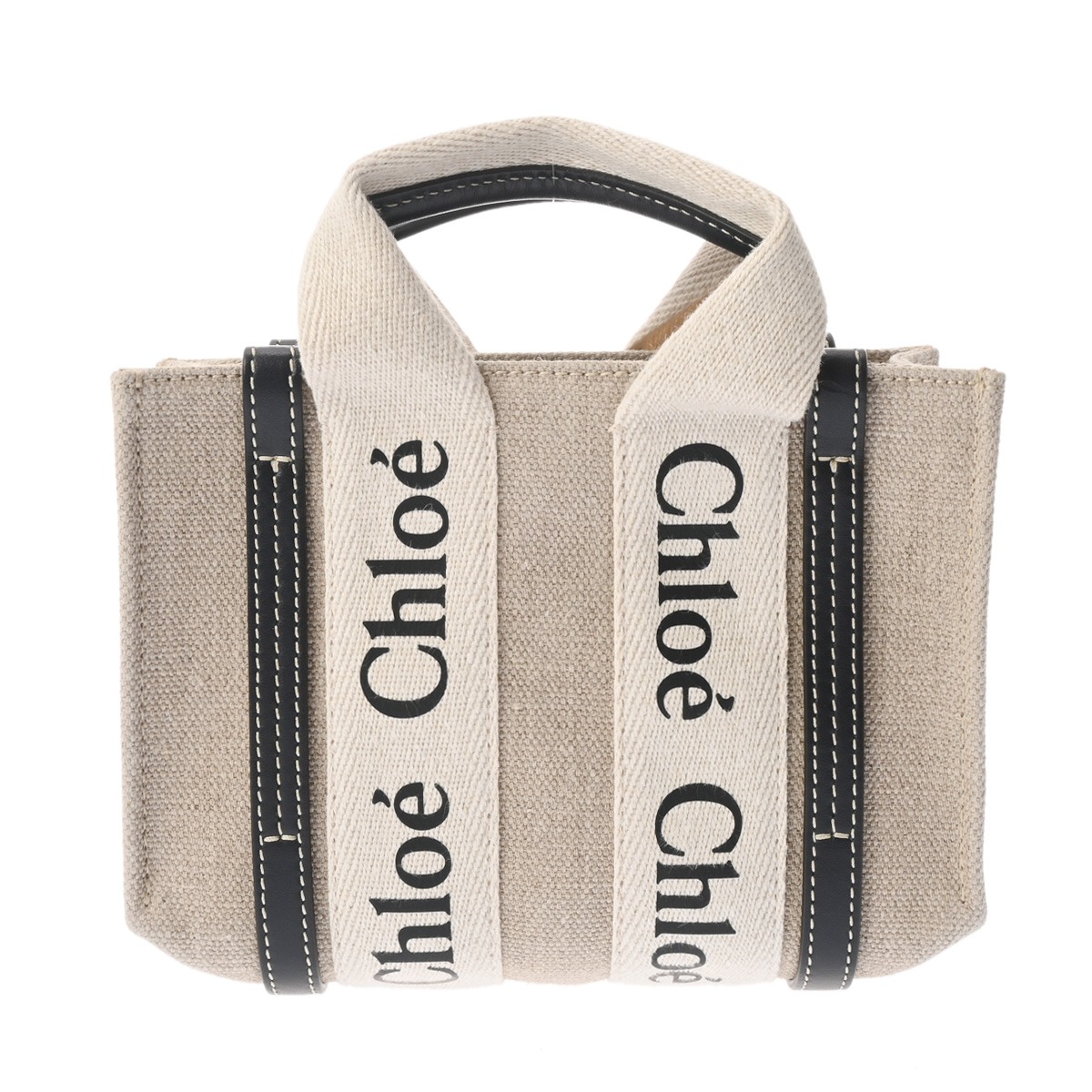 クロエ WOODY ミニトートバッグ ベージュ/ブラック CHC22AP237I26 リネンキャンバス/カーフ レディース バッグ 【中古】【bag】