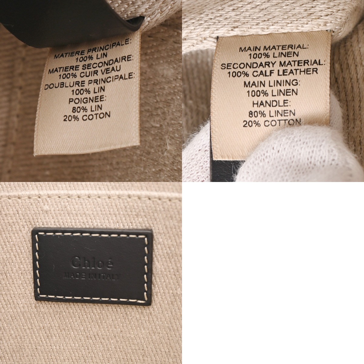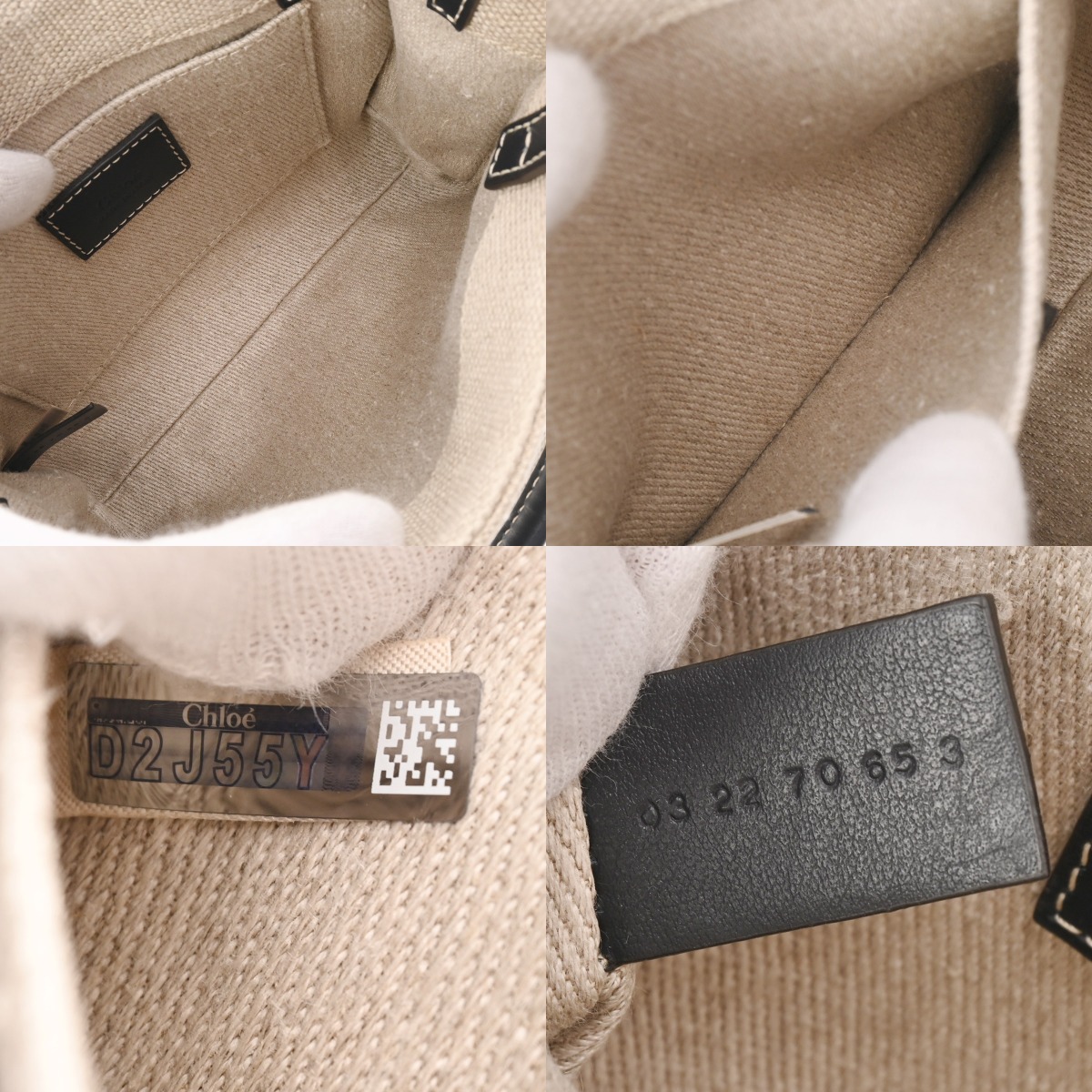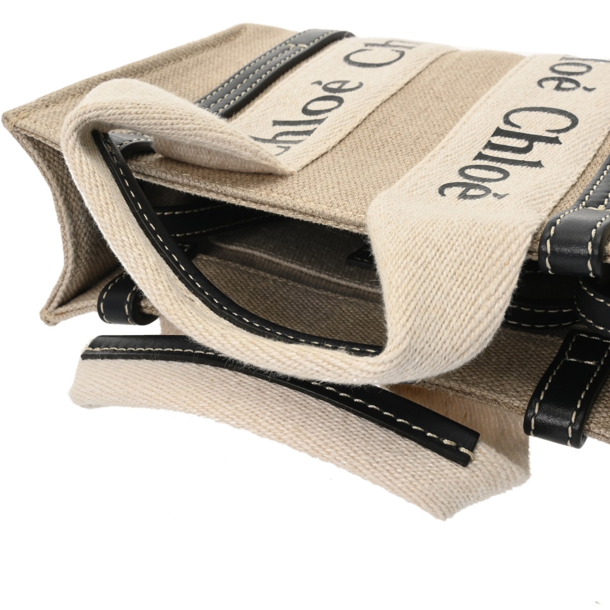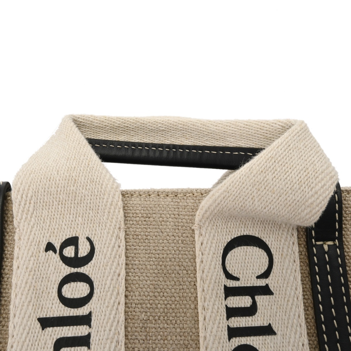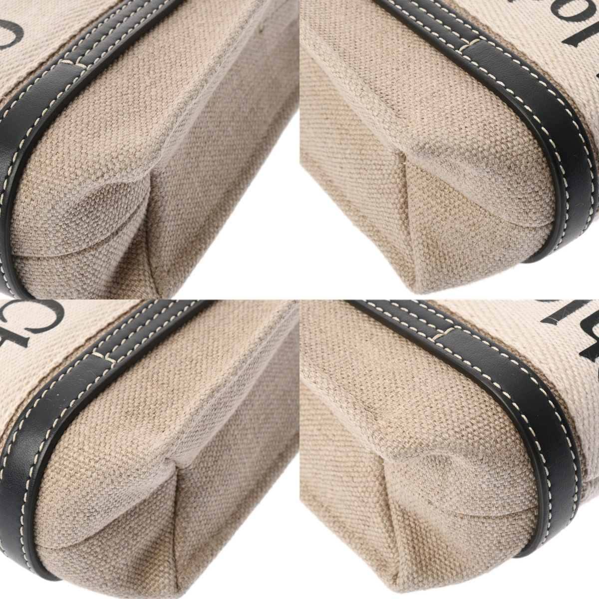 クロエ WOODY ミニトートバッグ ベージュ/ブラック CHC22AP237I26 リネンキャンバス/カーフ レディース バッグ 【中古】【bag】