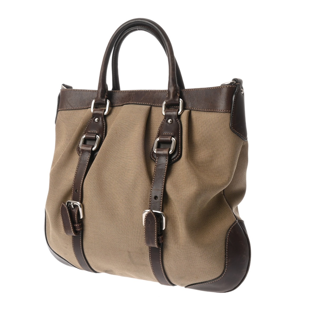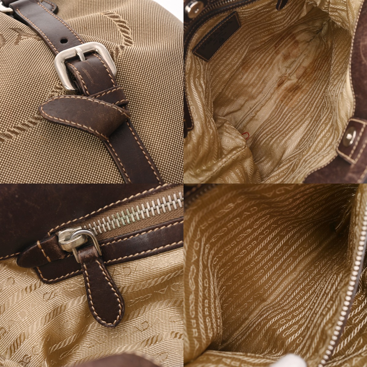 プラダ 2WAY ベージュ/ブラウン ロゴジャガードキャンバス/レザー レディース バッグ 【中古】【bag】
