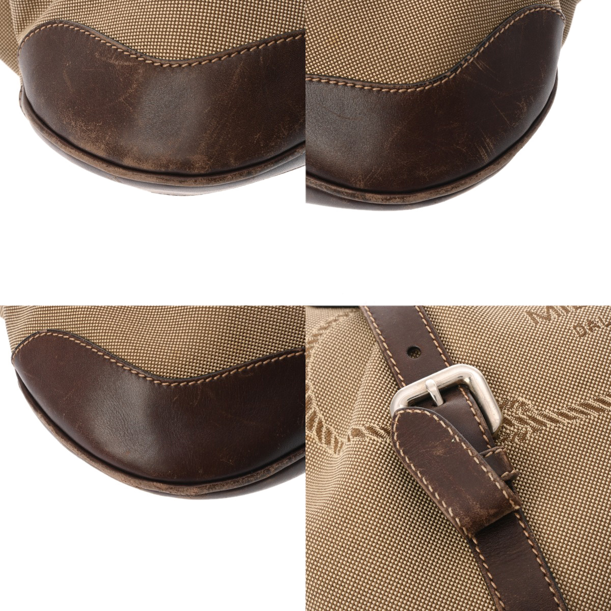 - 型崩れ、シワ、レザーにスレ、薄汚れ、ベルト、ショルダーにクセ、金具にスリキズなど使用感がございます。