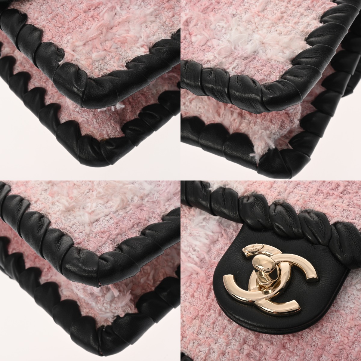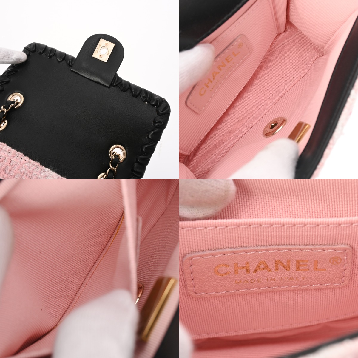 シャネル ミニフラップバッグ ピンク/ブラック AS2495 ツイード/カーフ レディース バッグ 【中古】【bag】