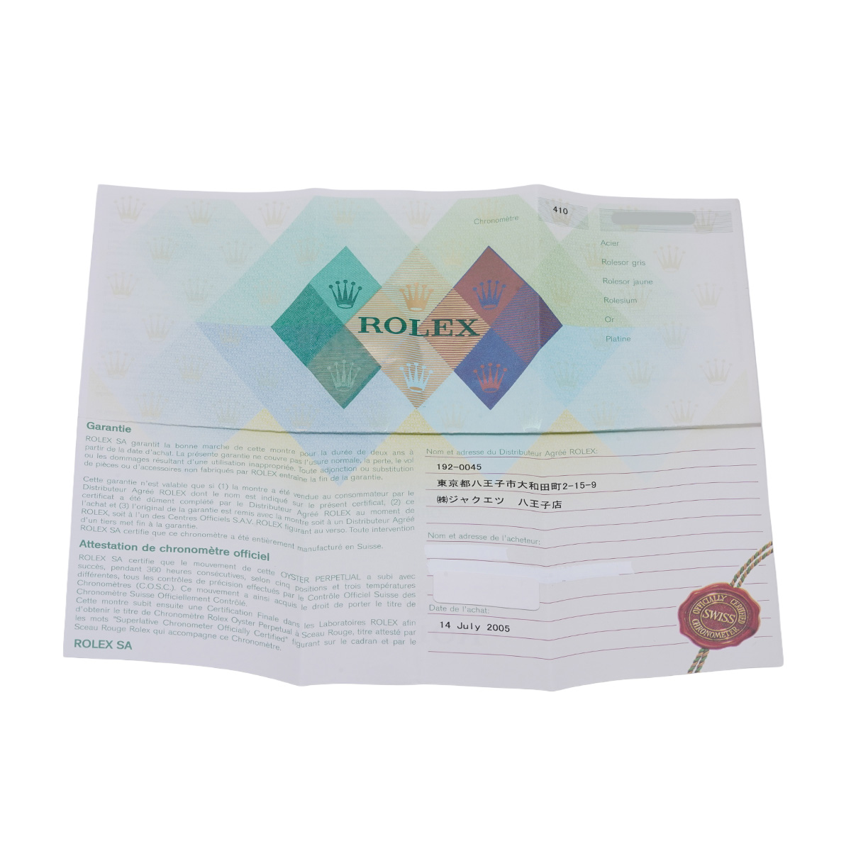 - メーカー保証書( 2005年7月国内購入) / メーカー箱(劣化)/冊子/タグ