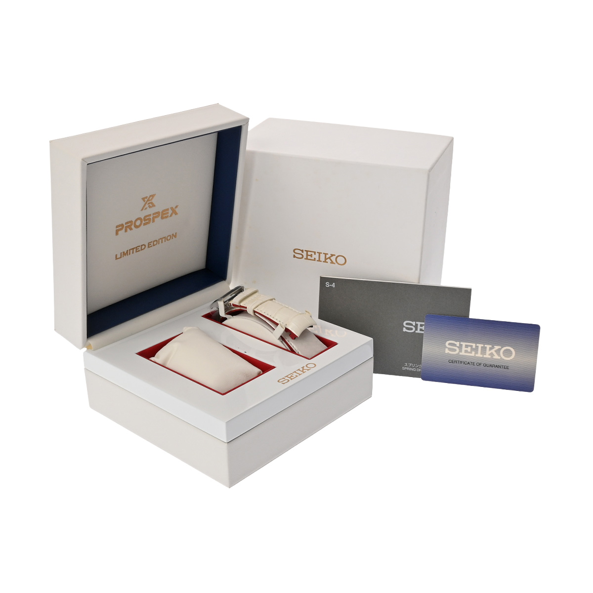 - メーカー保証書( 2019年9月国内購入) / 替えベルト( クロコダイル/ホワイト) / メーカー箱(ダメージ)/冊子