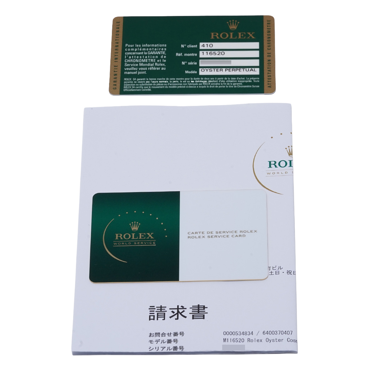 - メーカー保証書( 2011年4月国内購入) / メーカー箱/冊子 / 請求書(2026年4月オーバーホール他)サービスカード(有効期限2028年5月)