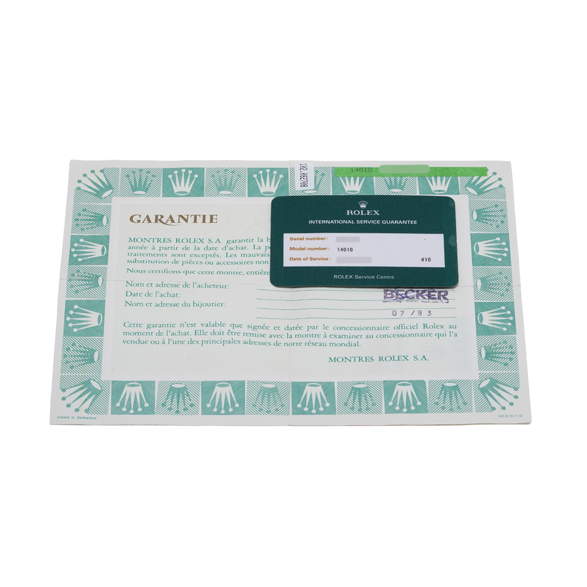 - メーカー保証書( 1993年7月海外購入) / 国際サービス保証書(2016年7月オーバーホール)