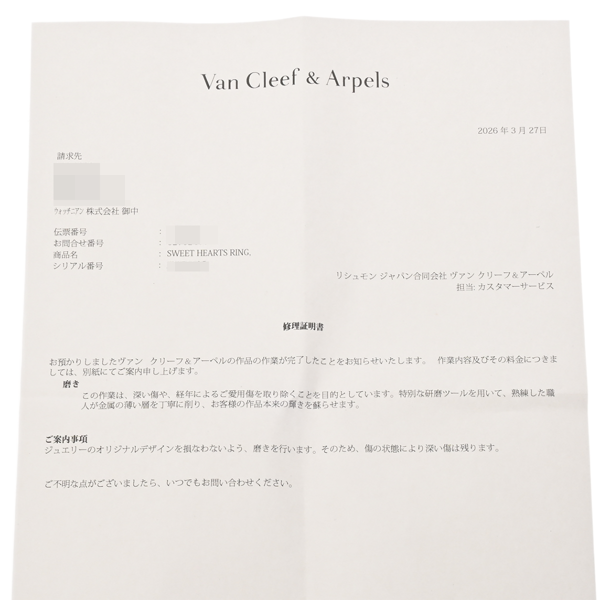 - 修理証明書