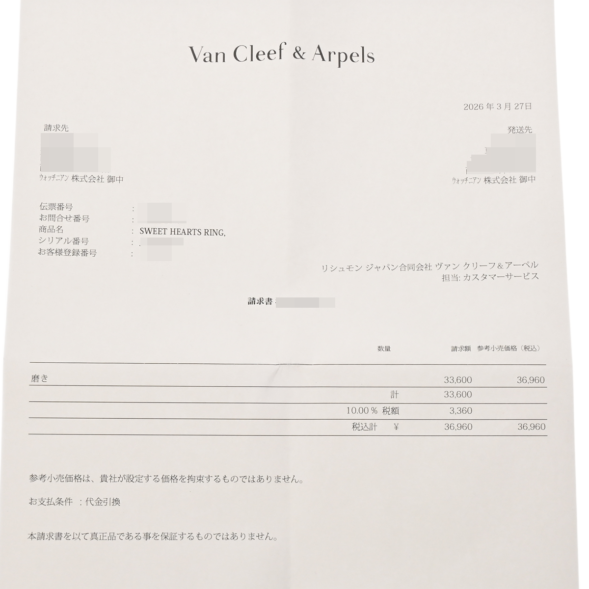 - 代金引換
