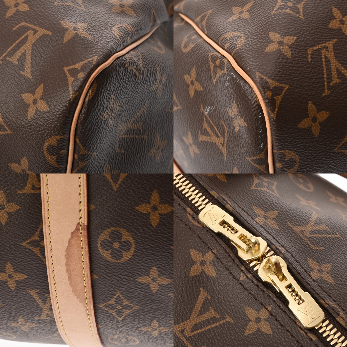 たたみクセ、テカリ、薄汚れ、スレやシワ、ヌメ革にヤケやシミ、ショルダーにクセ、金具に色ハゲやスリキズなど若干使用感がございます。