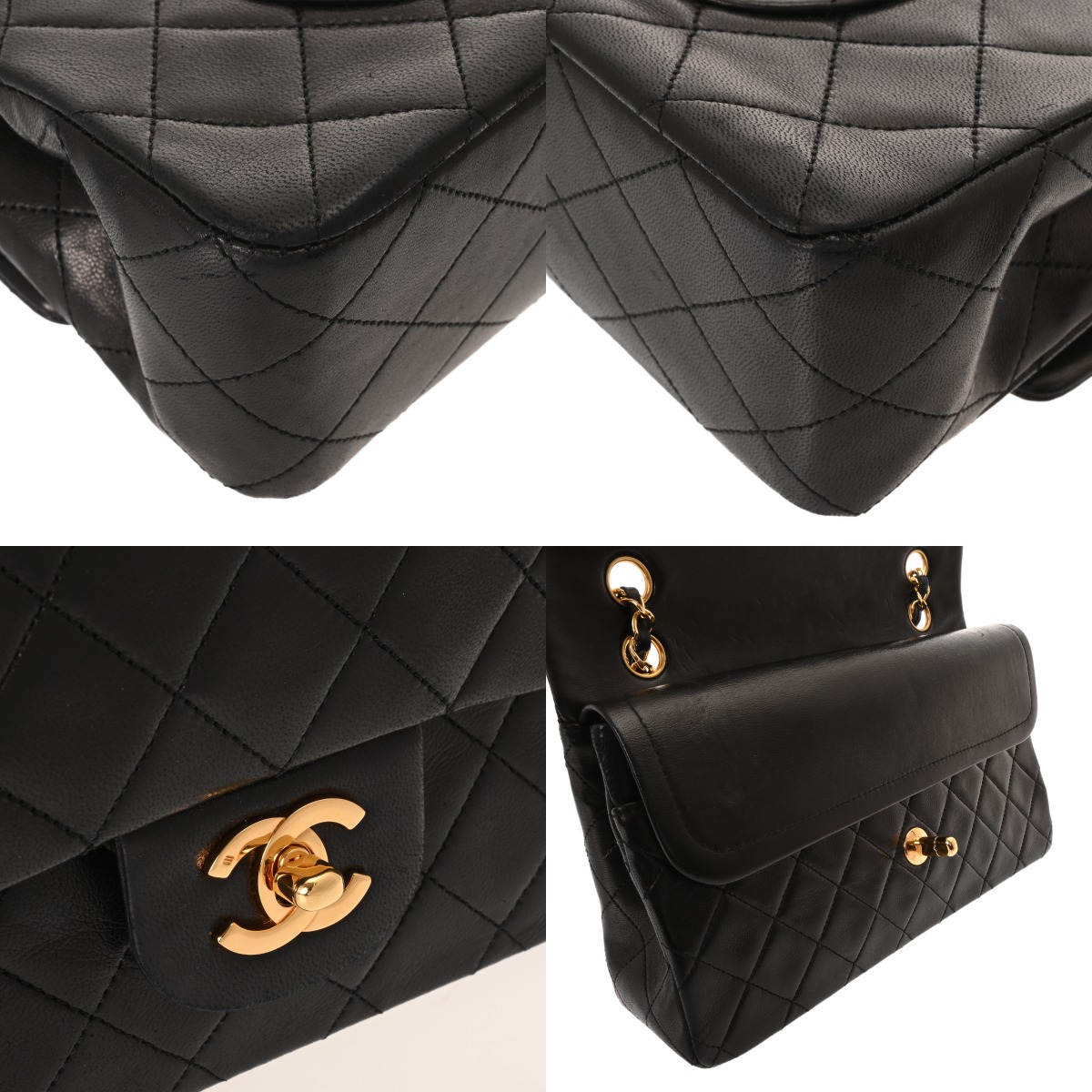 シャネル マトラッセ Wフラップ Wチェーンショルダー 25 ブラック A01112 ラムスキン レディース バッグ 【中古】【bag】