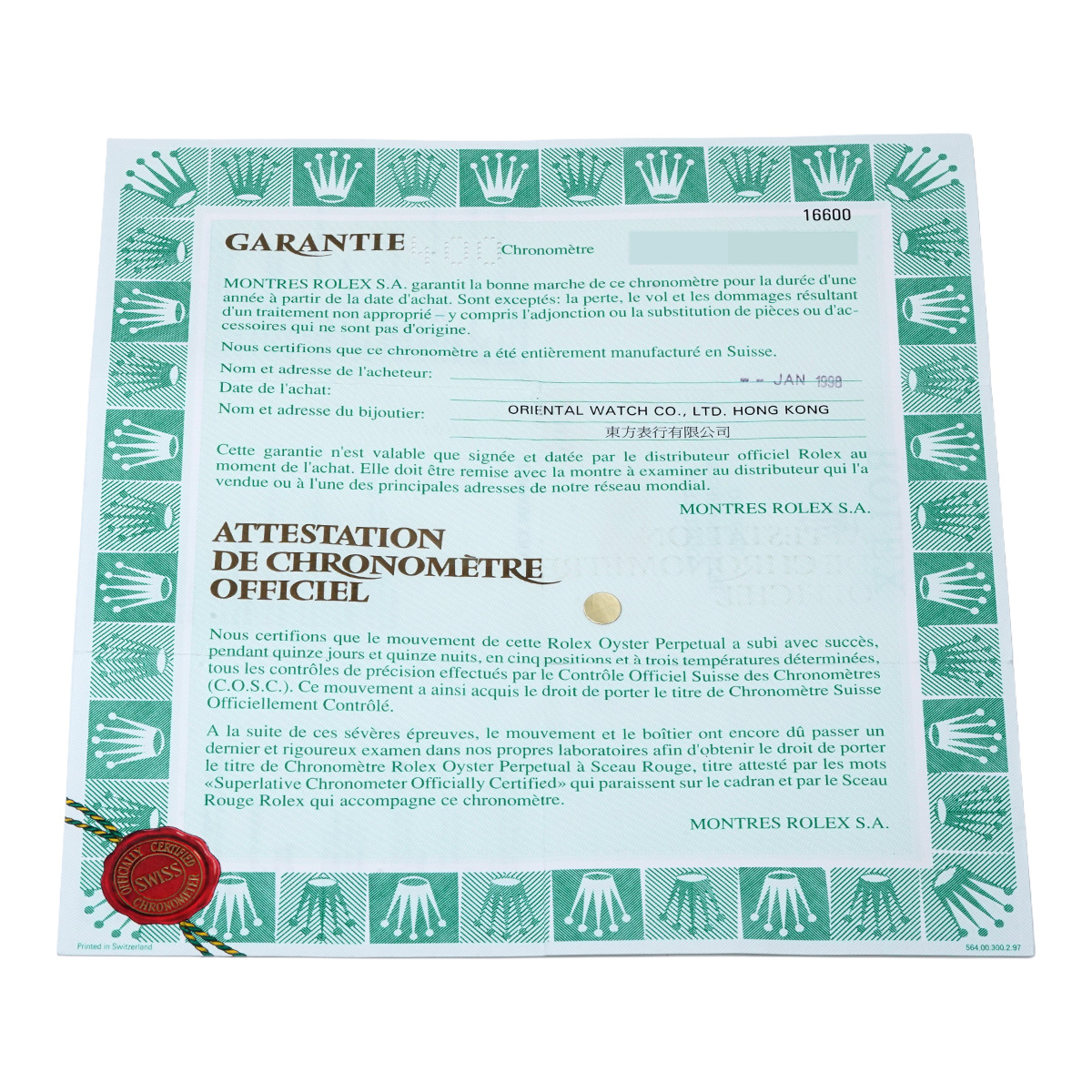 - メーカー保証書( 1998年1月海外購入) / メーカー箱/冊子/タグ