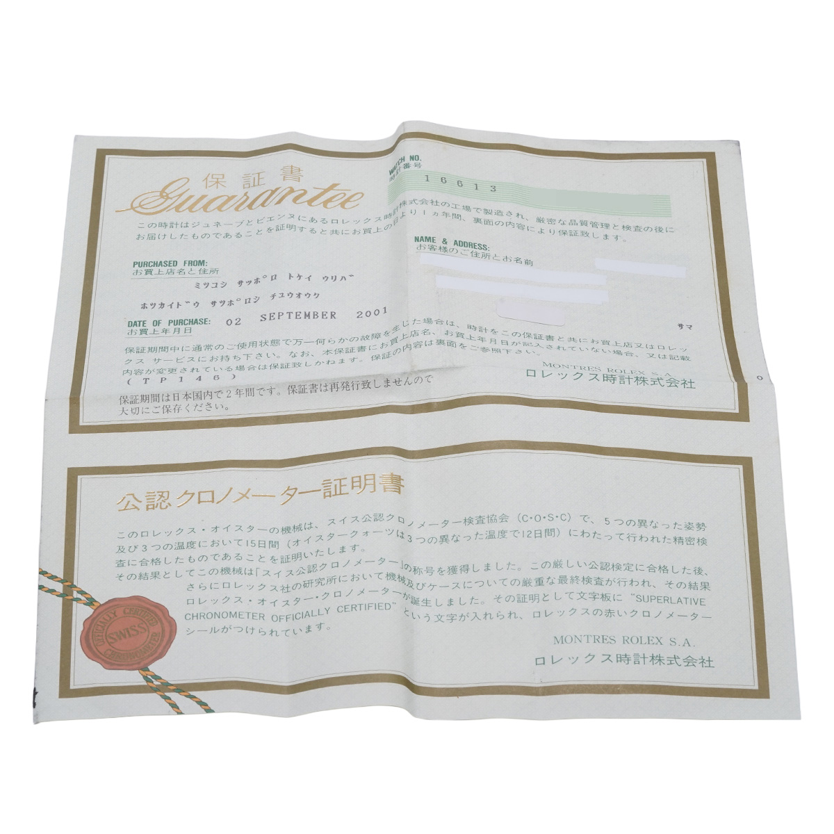- メーカー保証書( 2001年9月国内購入) / メーカー箱/冊子