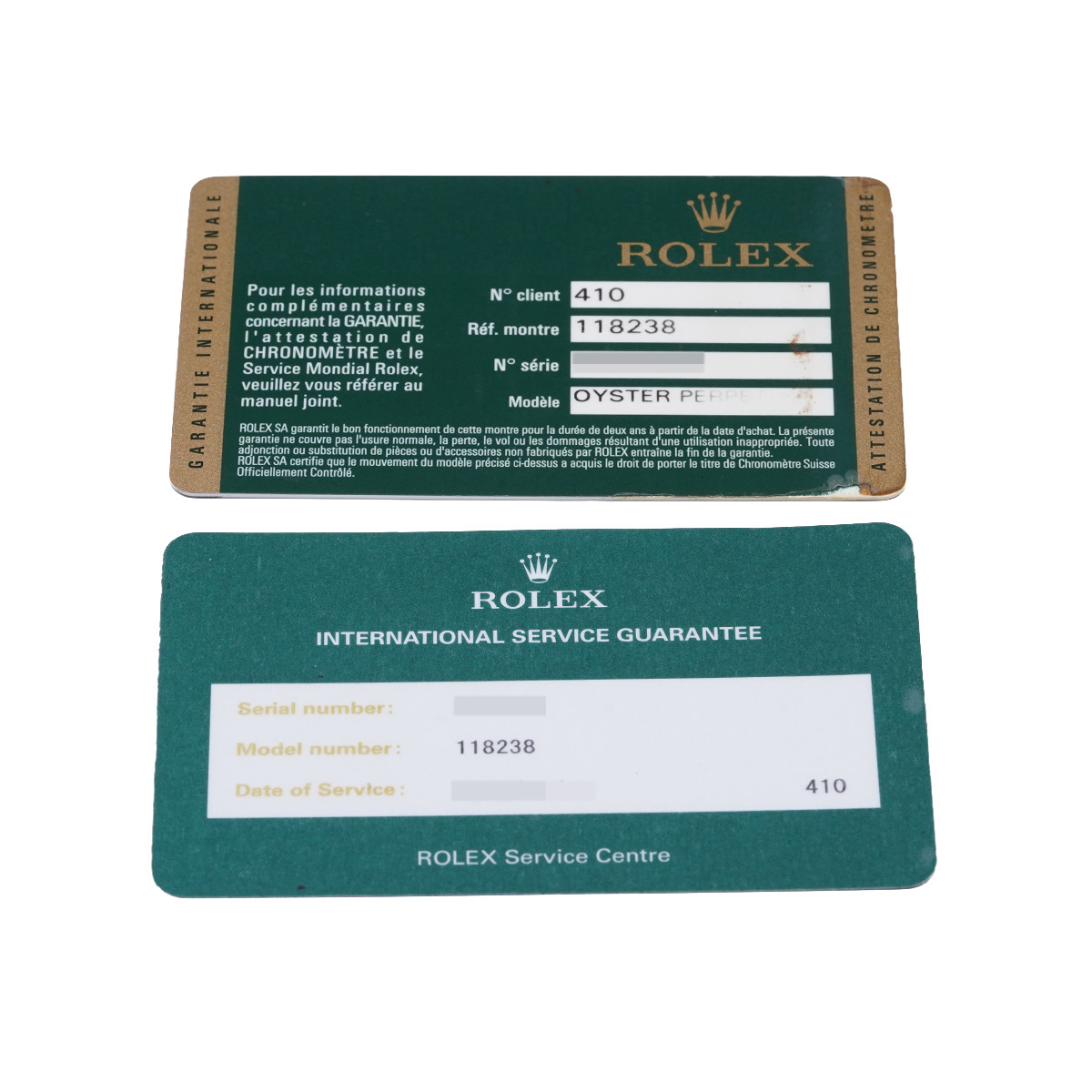 - メーカー保証書( 2011年7月国内購入) / メーカー箱(ダメージ)/冊子 / 国際サービス保証書(2019年11月オーバーホール)