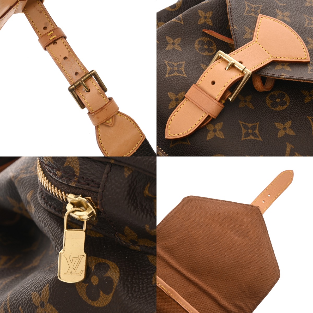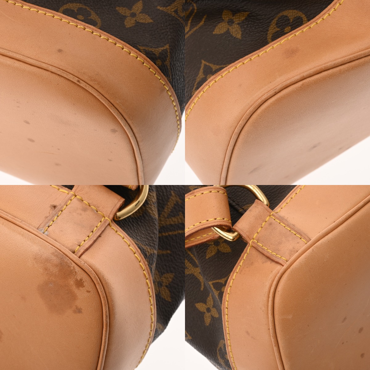 - つぶれ、テカリ、薄汚れやスレ、ヌメ革ヤケ、シミ、ショルダーにクセ、毛羽立ち、金具に色ハゲ、スリキズなど使用感がございます。