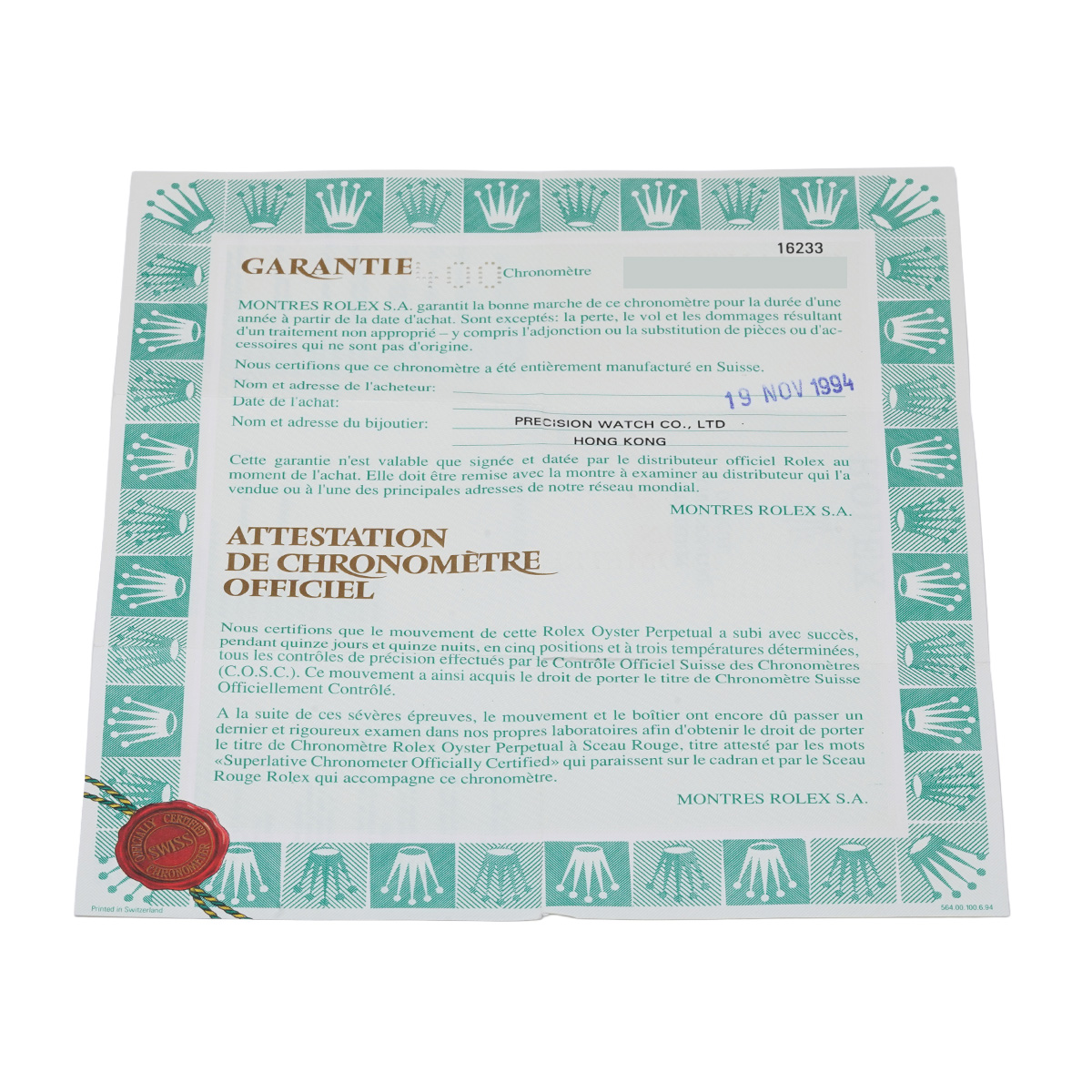 - メーカー保証書( 1994年11月海外購入) / メーカー箱(ダメージ)/タグ