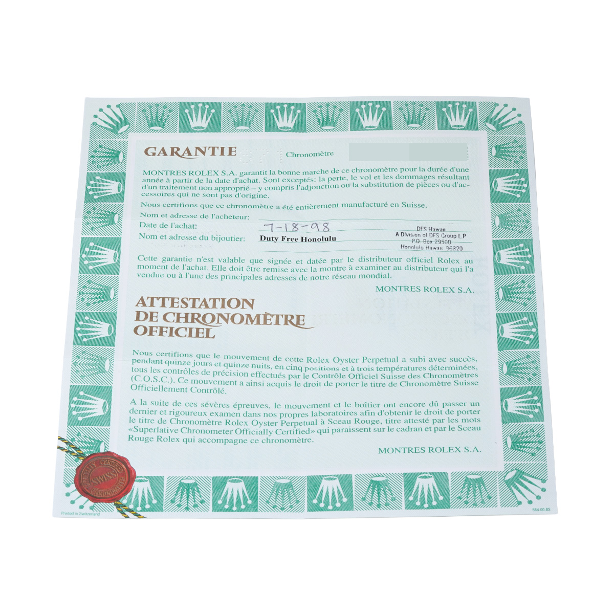 - メーカー保証書( 1998年7月海外購入) / メーカー箱/冊子/タグ