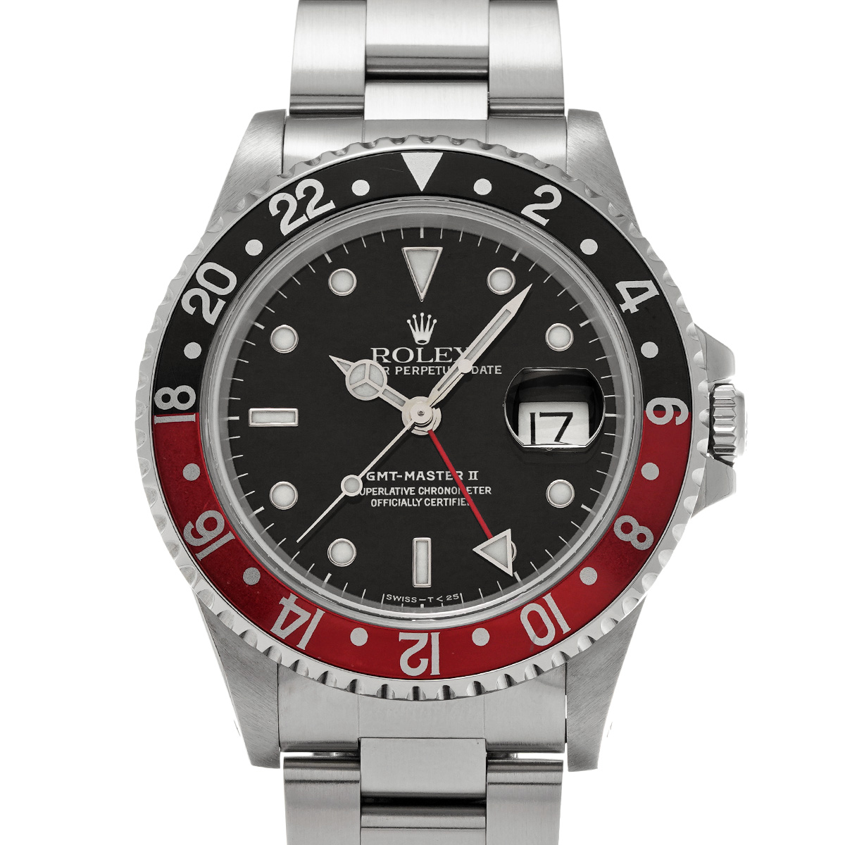 コメント従来の回転ベゼルと24時間針の組み合わせによる2タイムゾーンの表示に加えて、単独修正可能な短針を組み合わせることで同時に3つのタイムゾーンの時刻が表示可能となったGMTマスター II 。