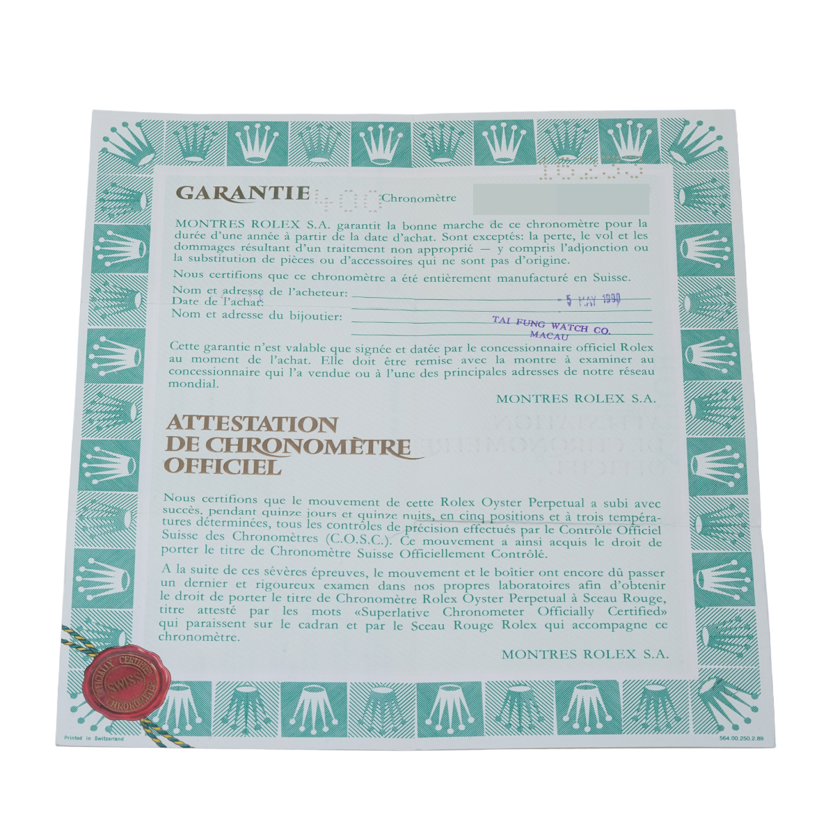 - メーカー保証書( 1990年5月海外購入) / メーカー箱/冊子/タグ