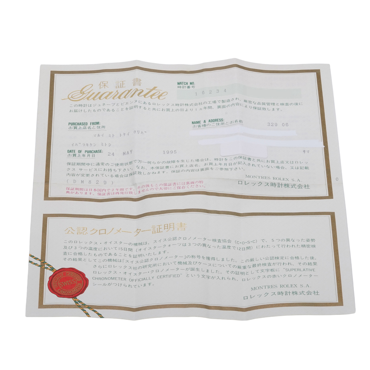 - メーカー保証書( 1995年5月国内購入) / メーカー箱(劣化)/冊子