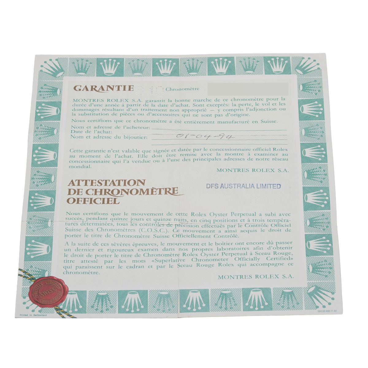 - メーカー保証書( 1994年4月海外購入) / メーカー箱(ダメージ)/冊子