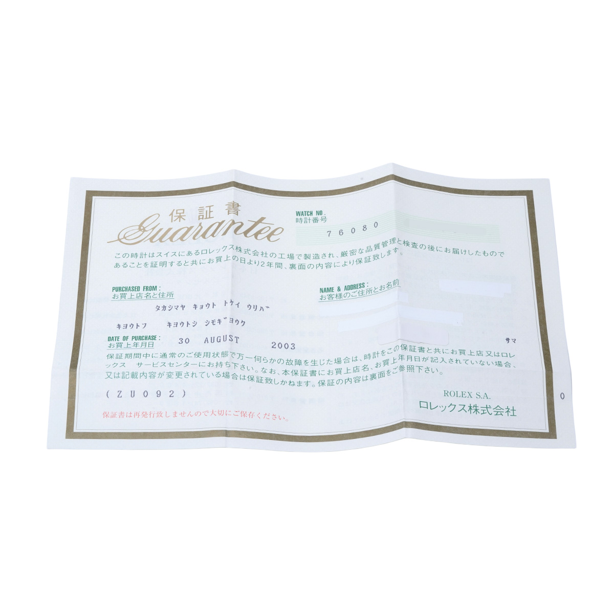 - メーカー保証書( 2003年8月国内購入) / メーカー箱