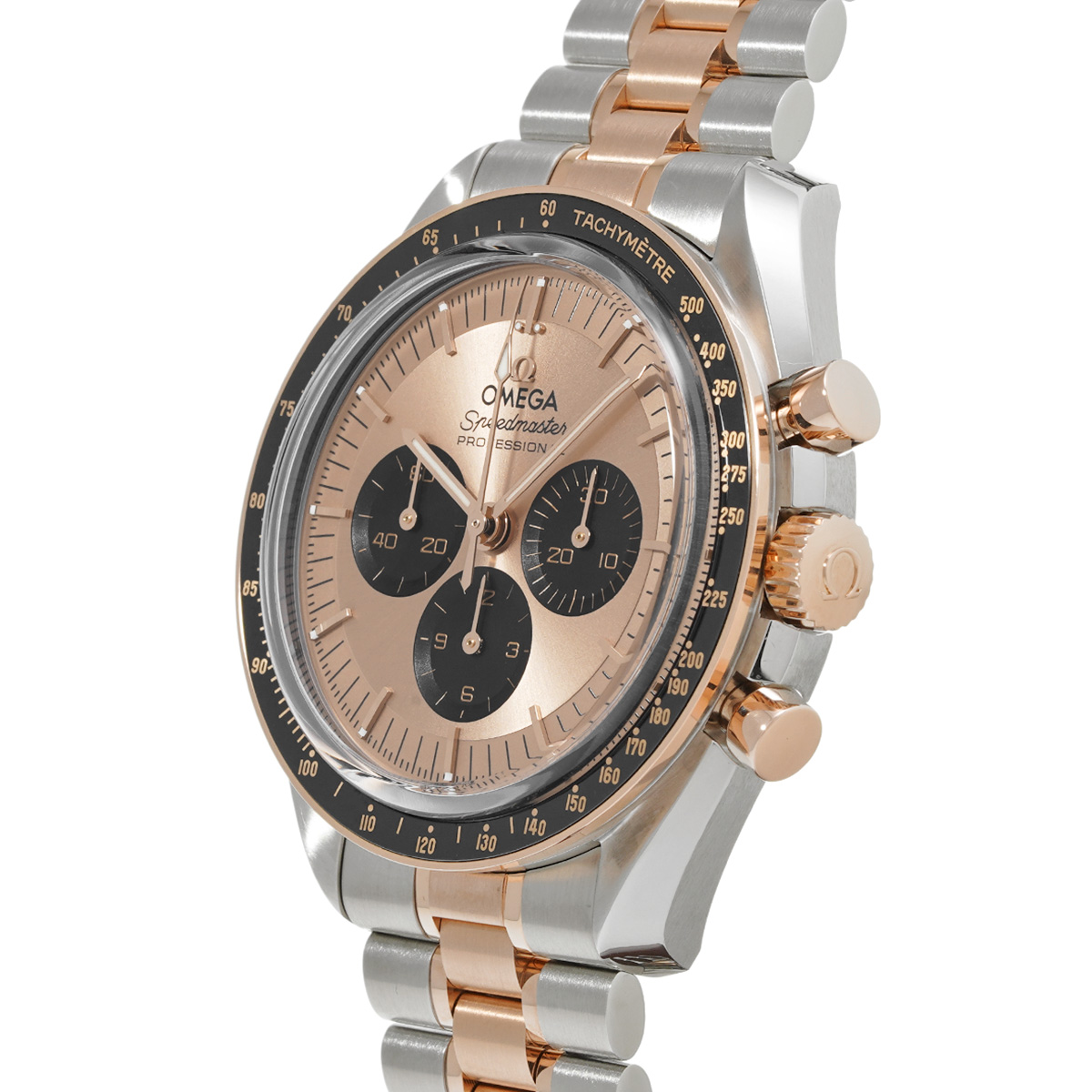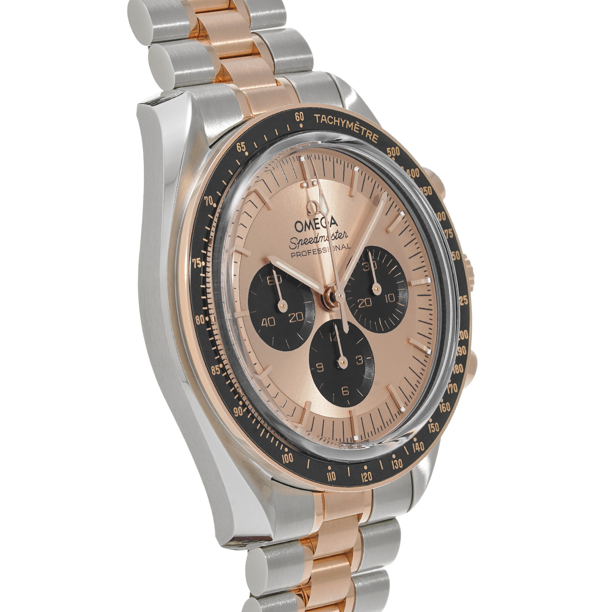現在では希少なコレクターズアイテムとなった、1980年代に存在したコンビモデルを想起させながらも、最新のCal.3861を搭載したマスタークロノメーター取得機であり、オメガ独自のセドナゴールド製の文字盤や針、セラゴールド技術でタキメータースケールを刻んだブラックセラミック製のベゼルなど、大幅なグレードアップを果たしました。 -