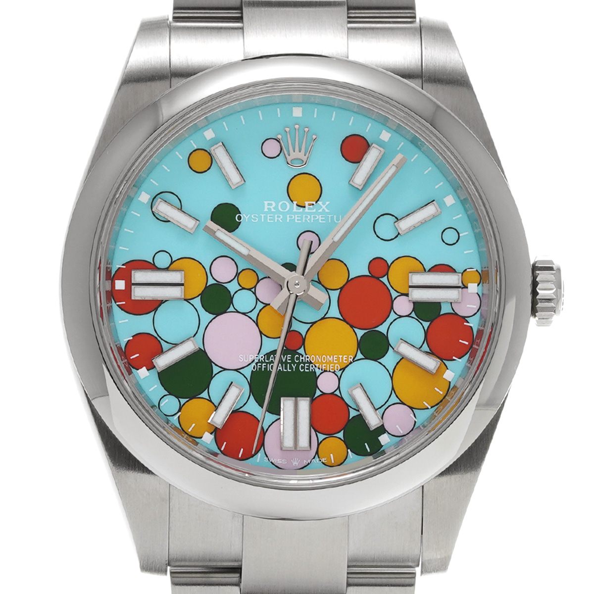 ロレックス オイスターパーペチュアル 41 124300 ターコイズブルー セレブレーションモチーフ メンズ 時計 【中古】【wristwatch】