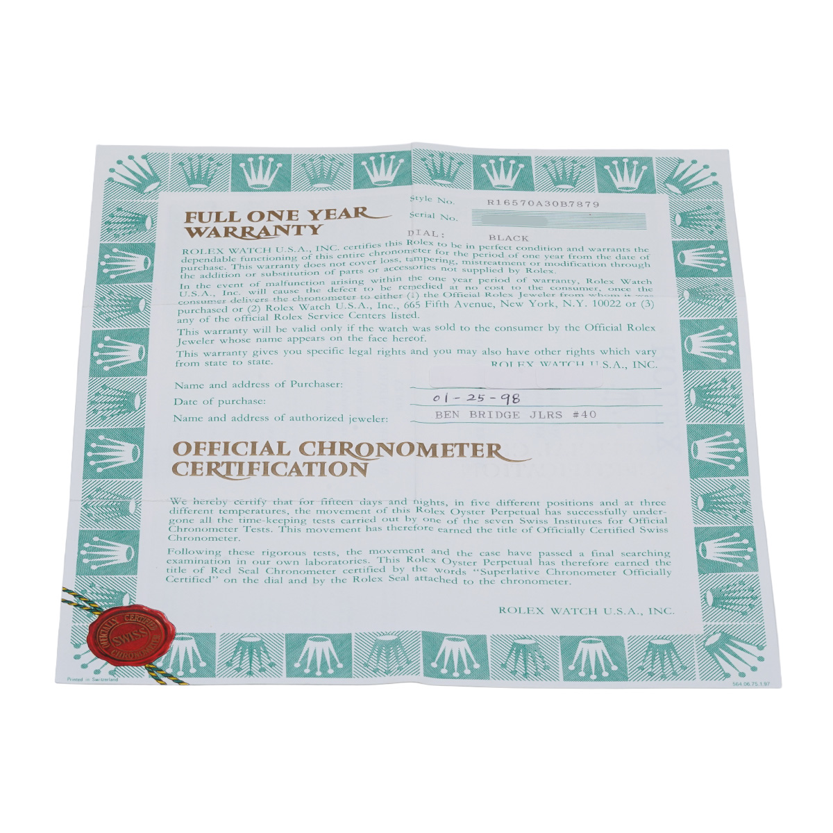 - メーカー保証書( 1998年1月海外購入) / 内箱(ダメージ)/タグ