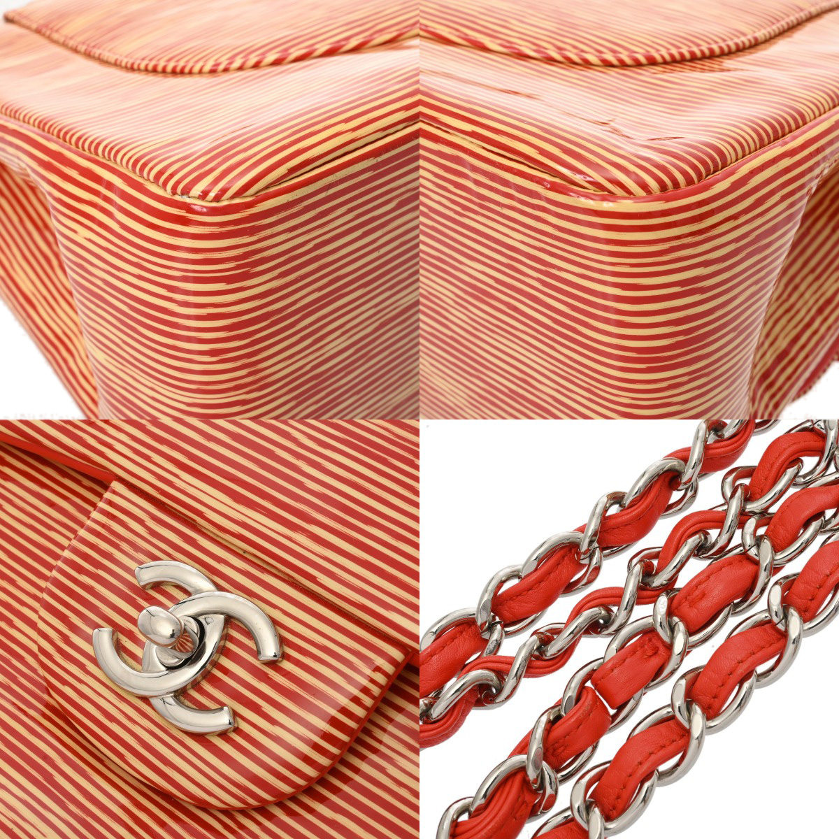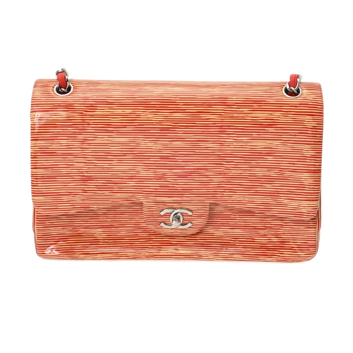 シャネル マトラッセ Wフラップチェーンショルダー 30 オレンジ A58600 パテントカーフスキン レディース バッグ 【中古】【bag】