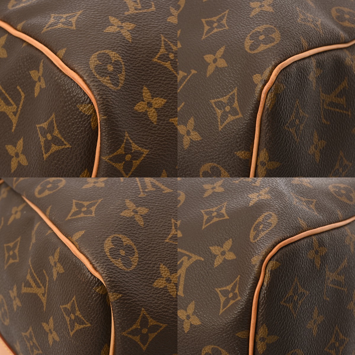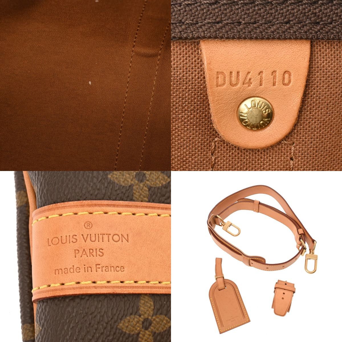- たたみクセ、汚れ、スレ、ヌメ革部分にヤケやシミ、シワ、ショルダーにクセやシワ、若干ヒビ割れ、金具部分に変色やくすみ、スレなど使用感がございます。