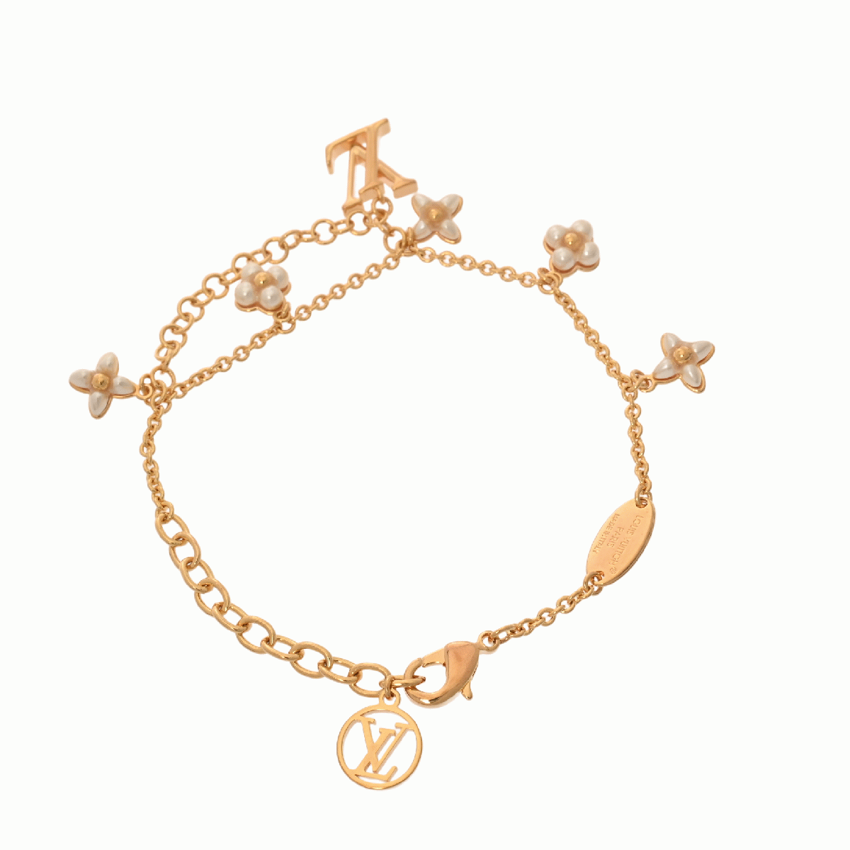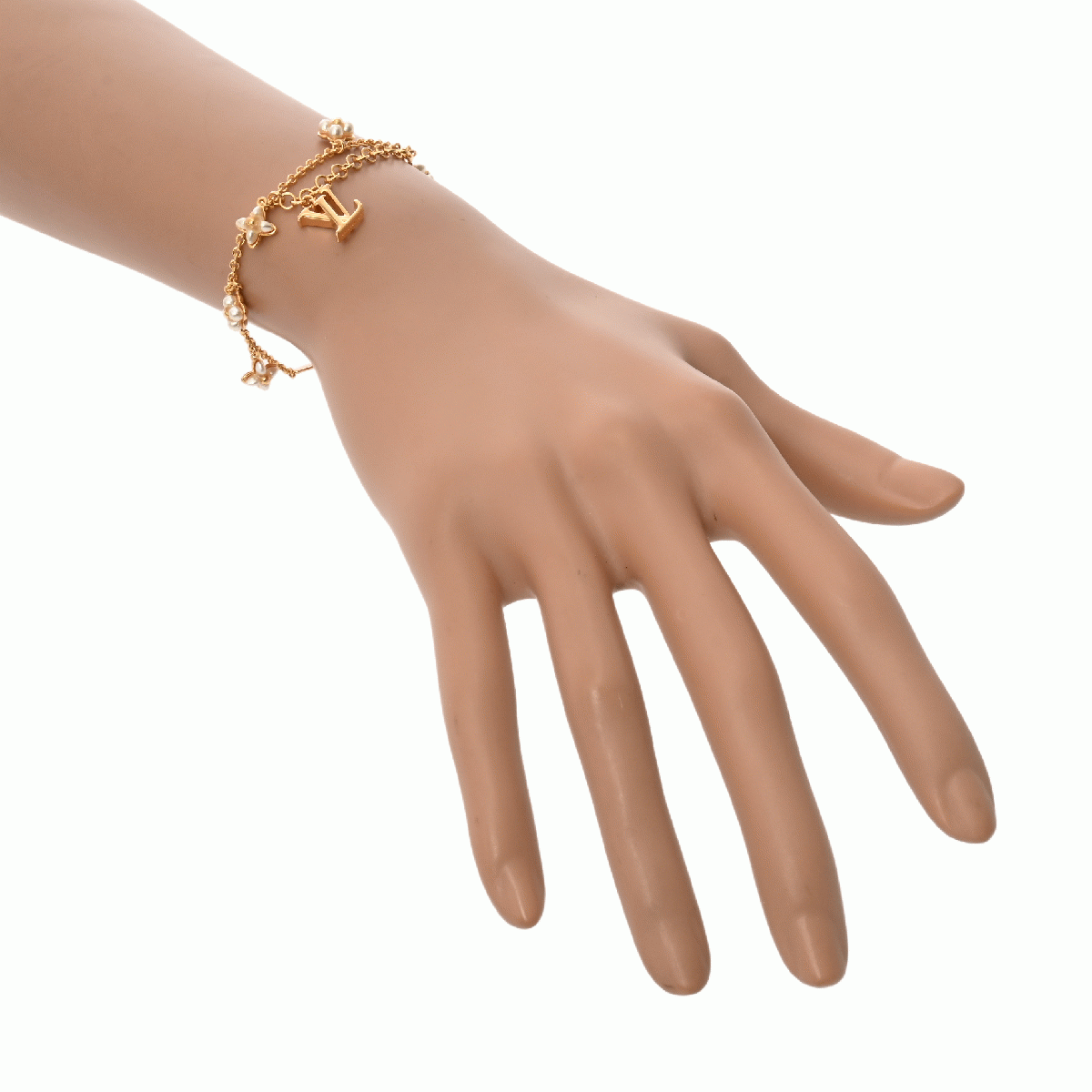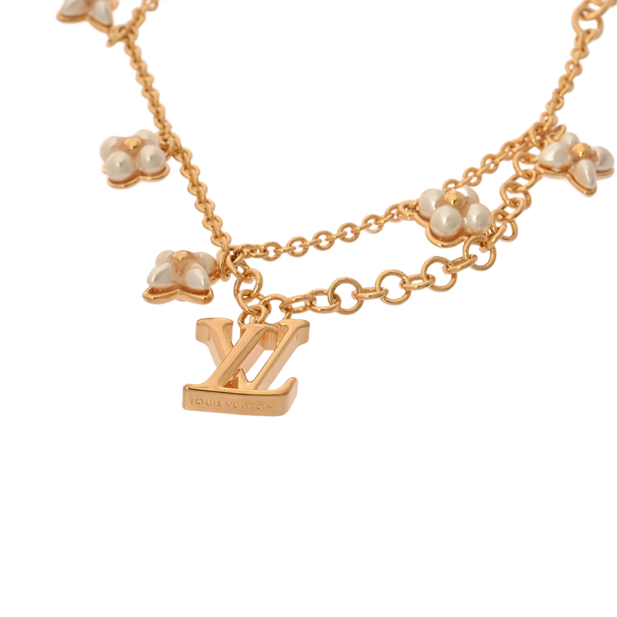 ルイ ヴィトン ブレスレット LVフローラグラム ゴールド/ホワイト M0940A メタル/ビーズ/ストラス レディース ジュエリー 【中古】【jewelry】