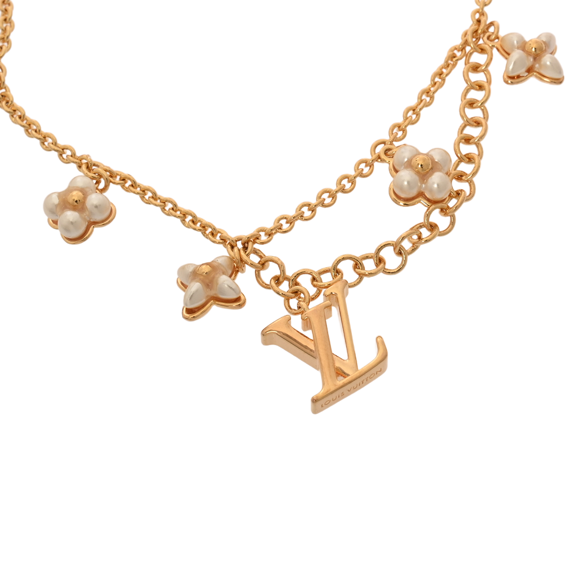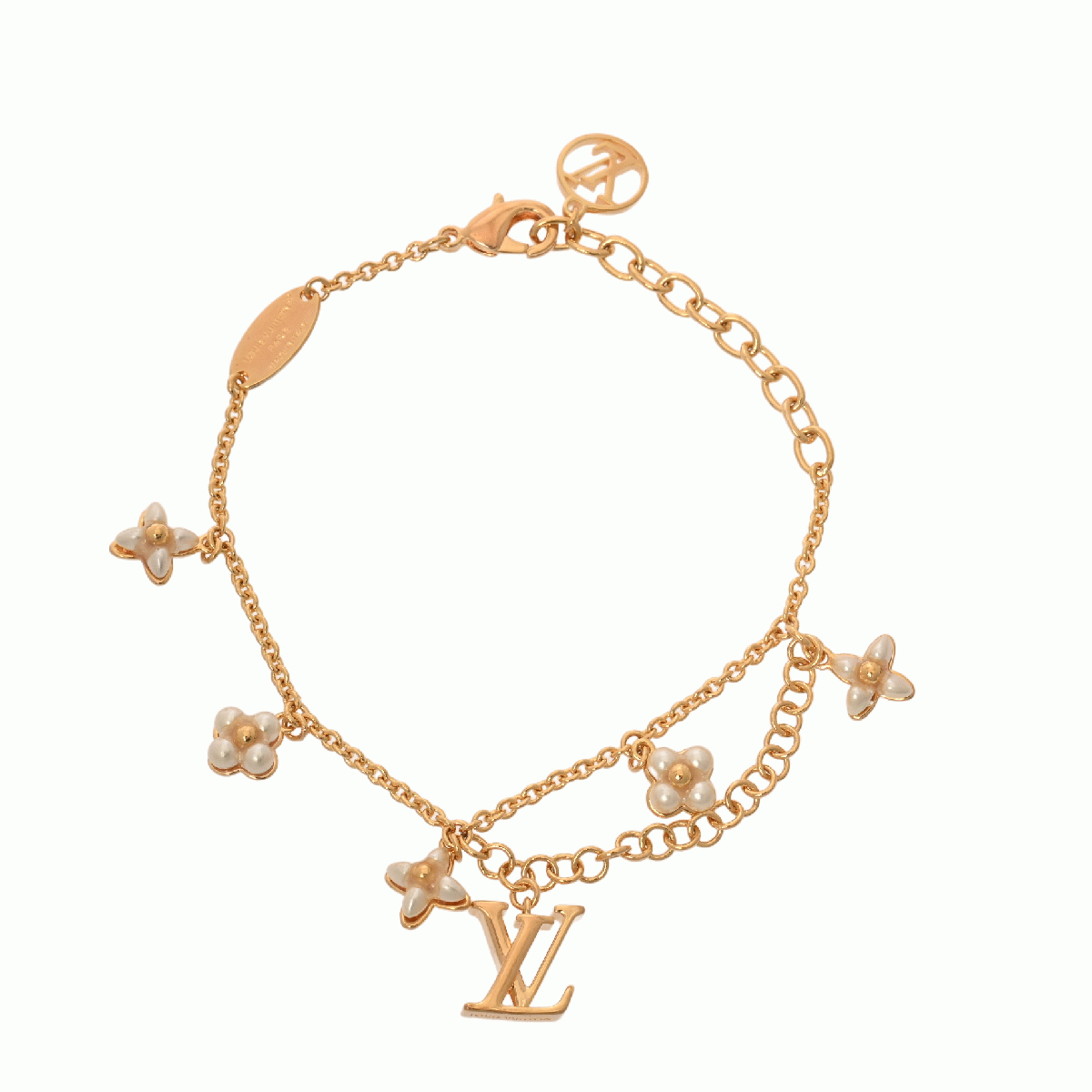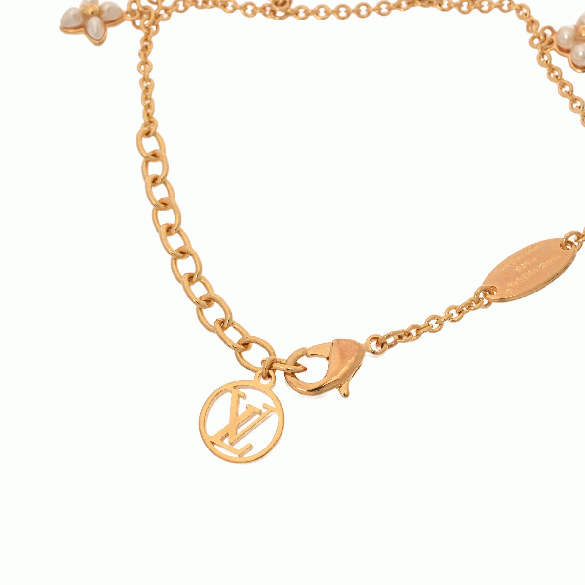 ルイ ヴィトン ブレスレット LVフローラグラム ゴールド/ホワイト M0940A メタル/ビーズ/ストラス レディース ジュエリー 【中古】【jewelry】