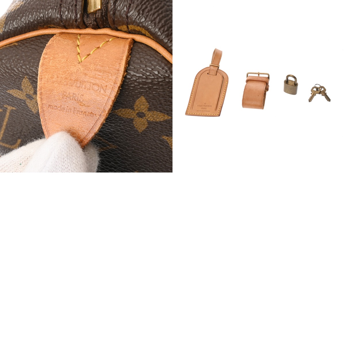 薄汚れ、スレ、少々毛羽立ち、ヌメ革部分にヤケやシワ、金具部分に変色や青錆の付着など使用感がございます。