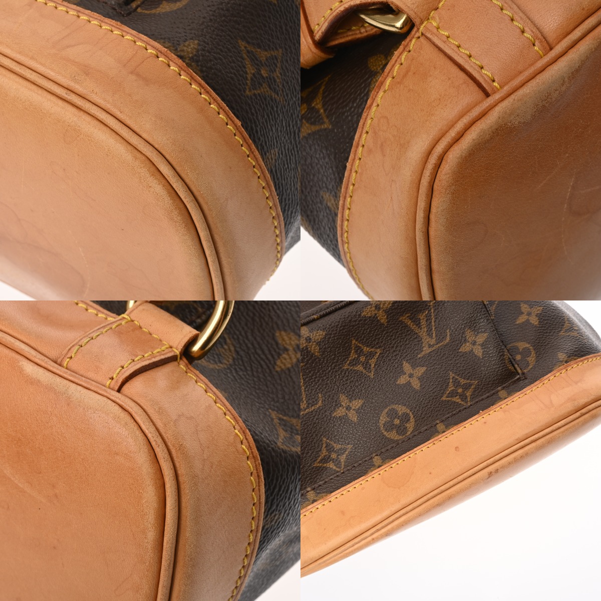 - たたみクセ、薄汚れ、少々テカリ、ヌメ革部分にシミなど使用感、紐にはひび割れなど使用感もあり、金具部分に変色など使用感がございます。