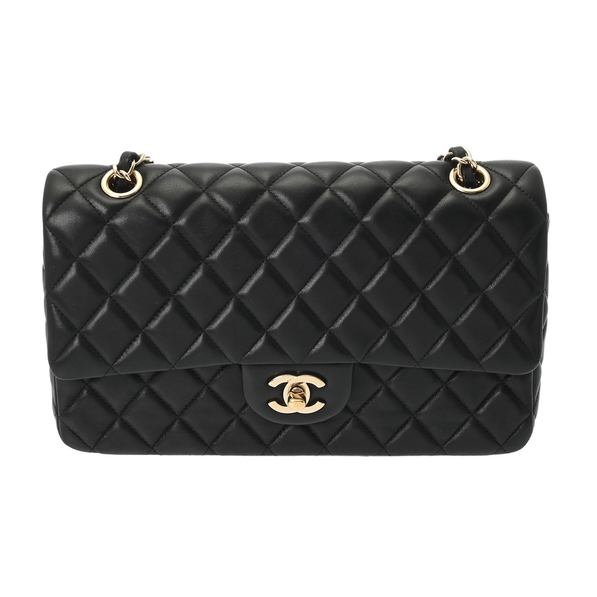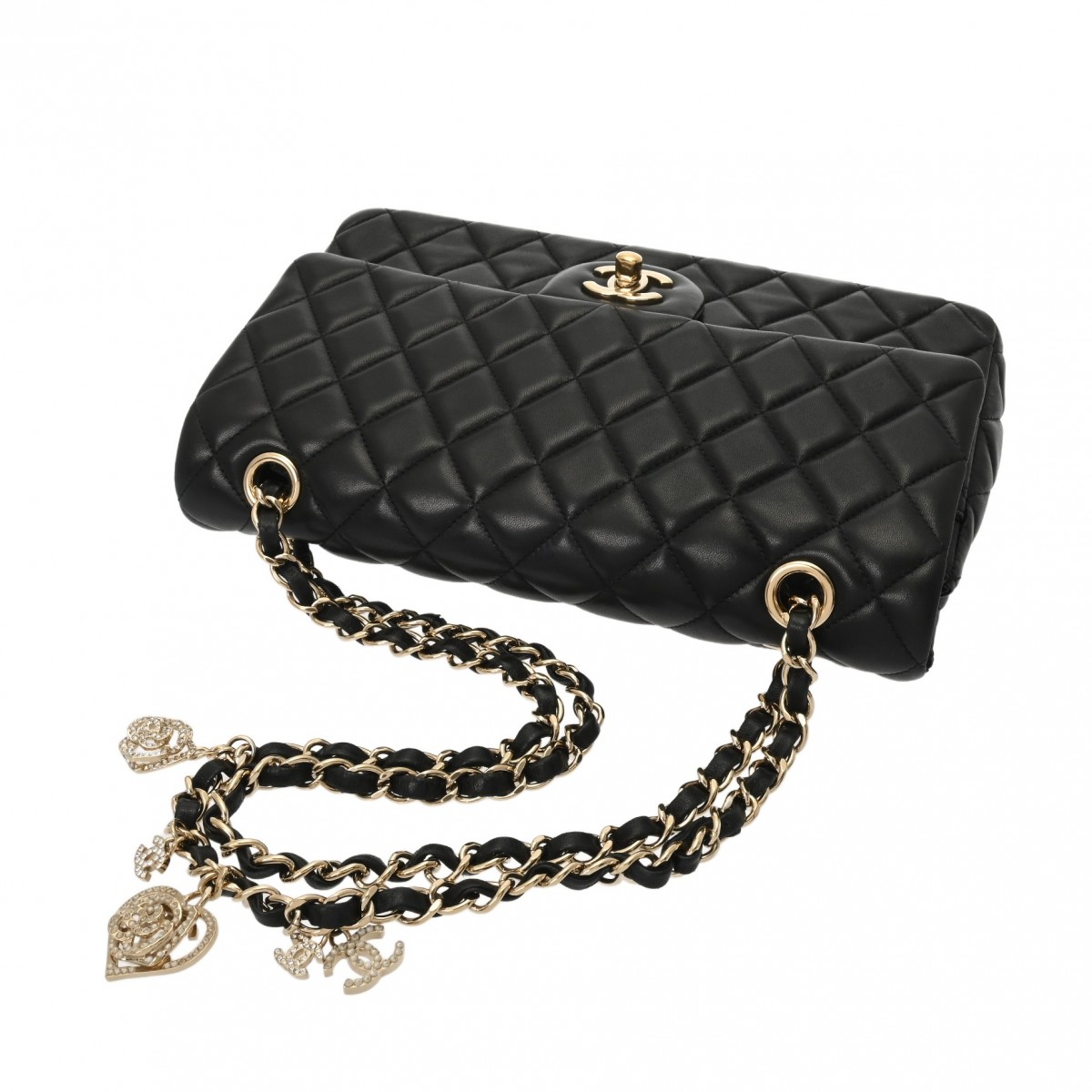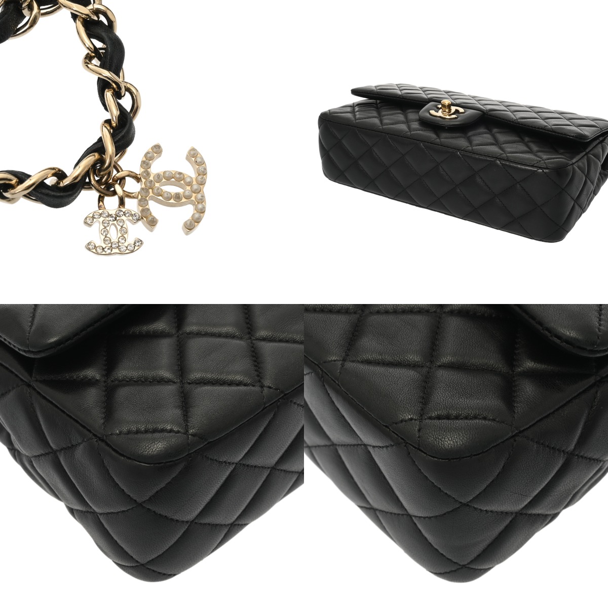 シャネル マトラッセ ハンドバッグ Wチェーンショルダー 25 ブラック ラムスキン/ラインストーン/フェイクパール レディース バッグ 【中古】【bag】