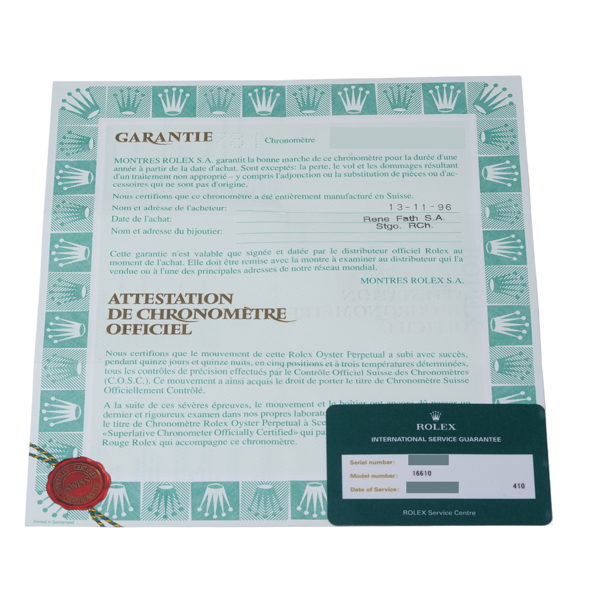 - メーカー保証書( 1996年11月海外購入) / メーカー箱 / 国際サービス保証書(2014年7月オーバーホール)