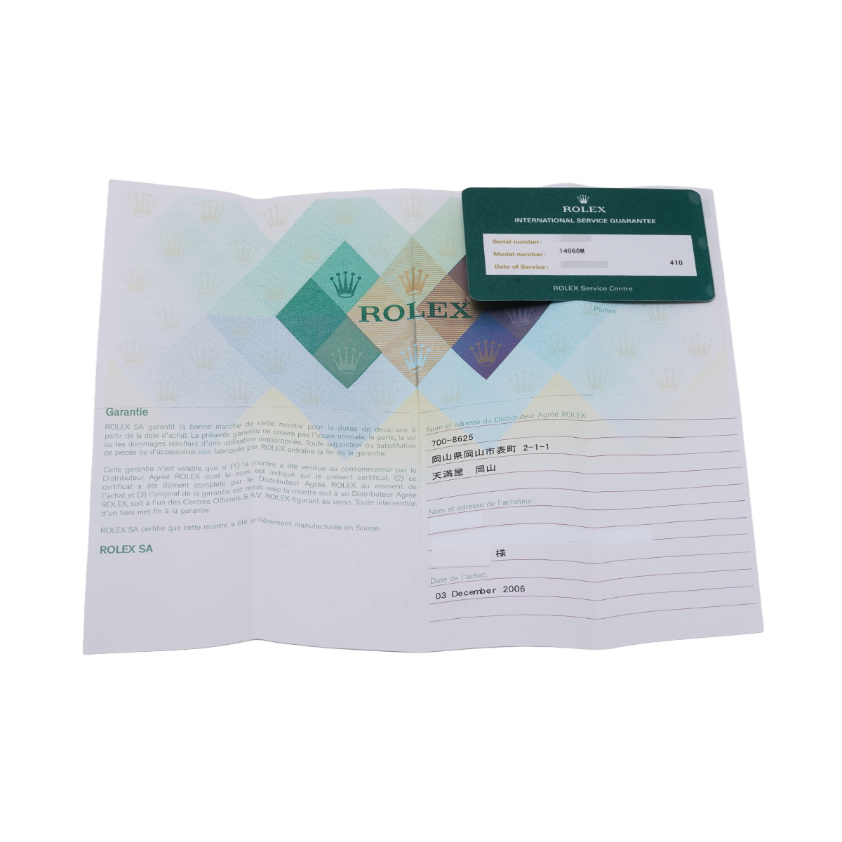 - メーカー保証書( 2006年12月国内購入) / メーカー箱(ダメージ/枕欠品)/冊子 / 国際サービス保証書(2015年3月オーバーホール)