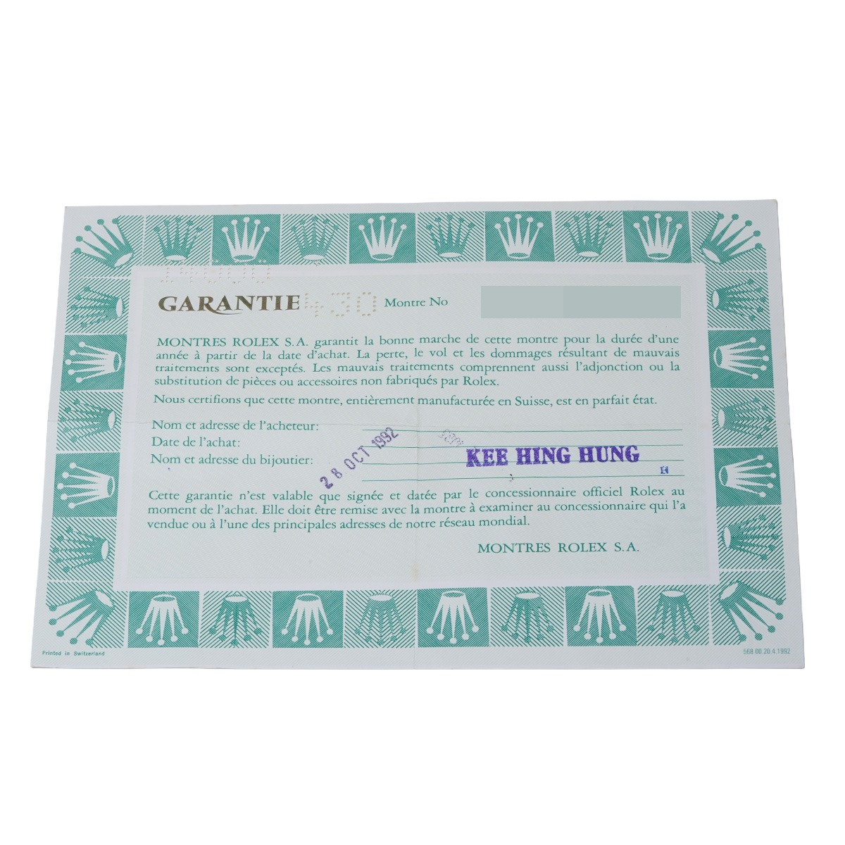 - メーカー保証書( 1992年10月海外購入) / メーカー箱(ダメージ)