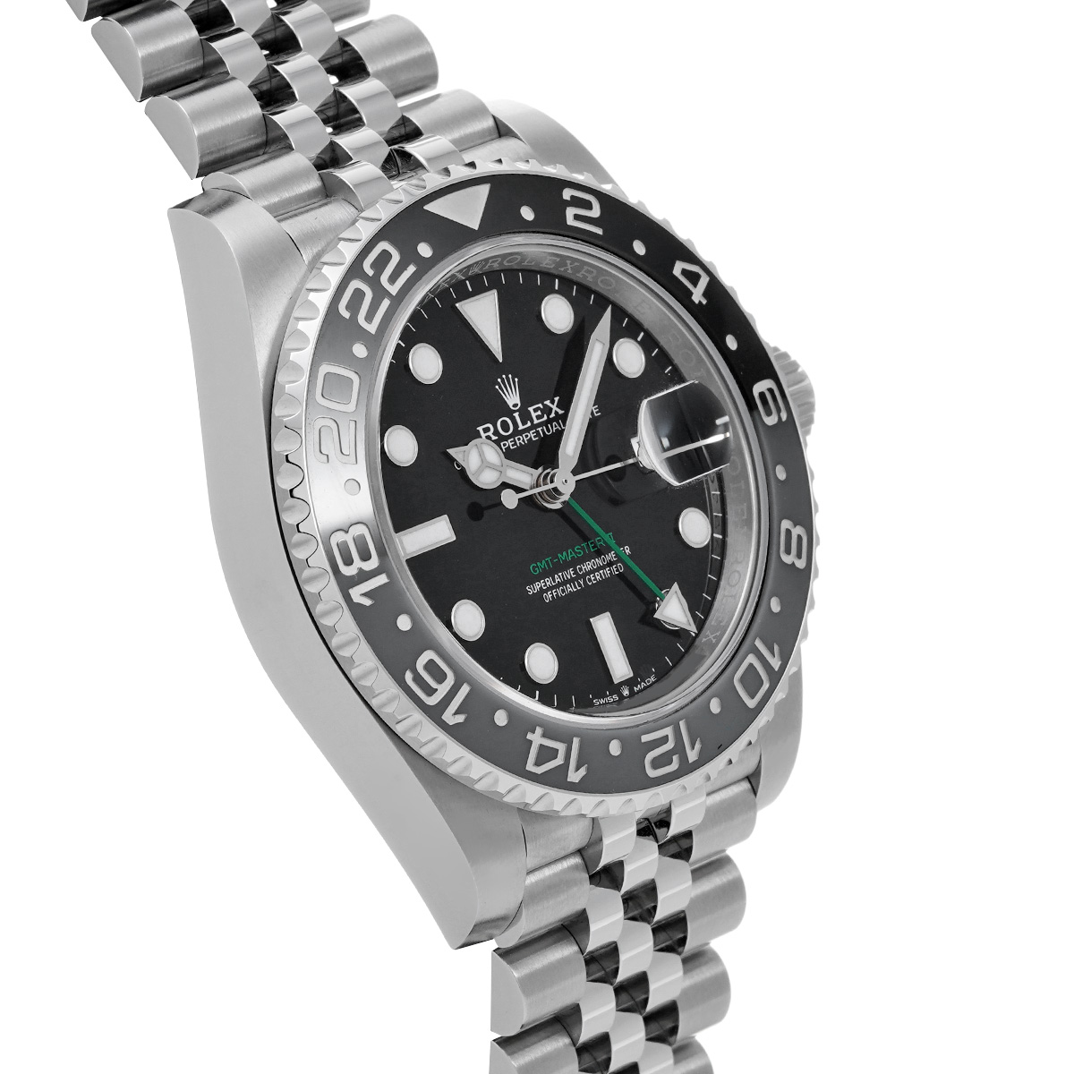 モノトーンのベゼルとグリーンのモデル名表記とGMT針が、2019年に生産終了した先代のRef.116710LNを想起させます。 -