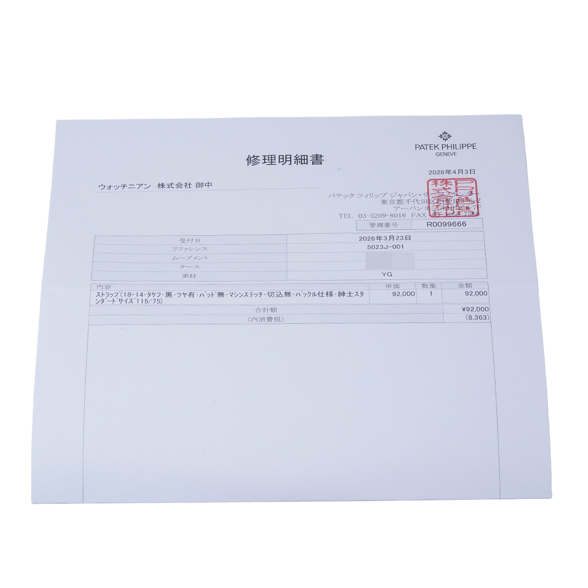 - 修理明細書(2026年4月ストラップ交換)